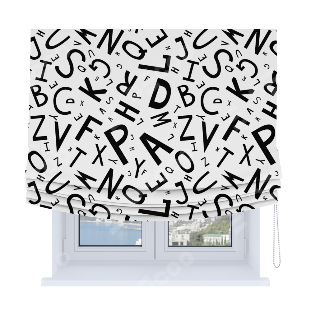 Римская штора Soft с мягкими складками, «Литеры на белом»