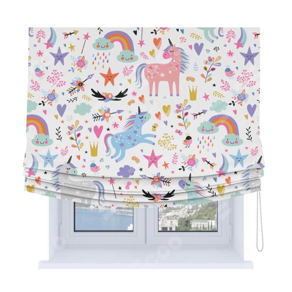 Римская штора Soft с мягкими складками, «Радужные единороги»