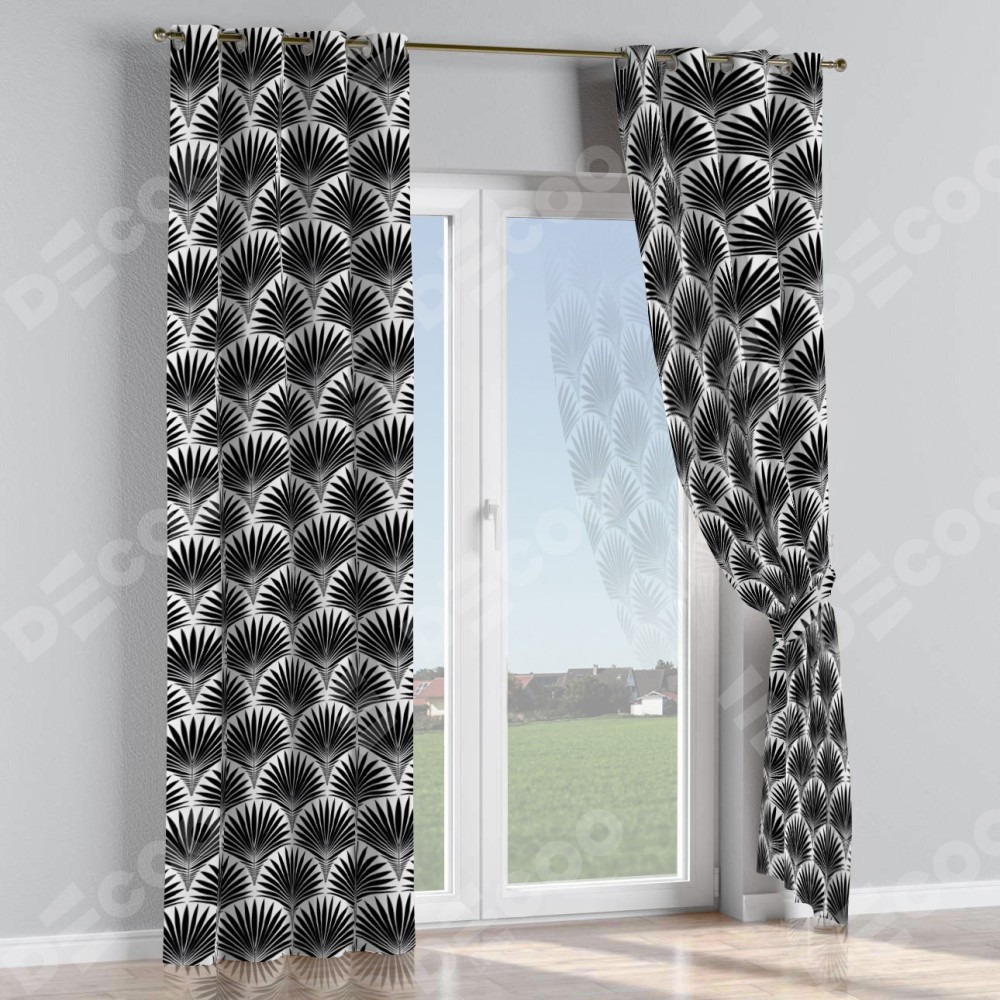 Комплект штор на люверсах «Арт-деко листья черный»