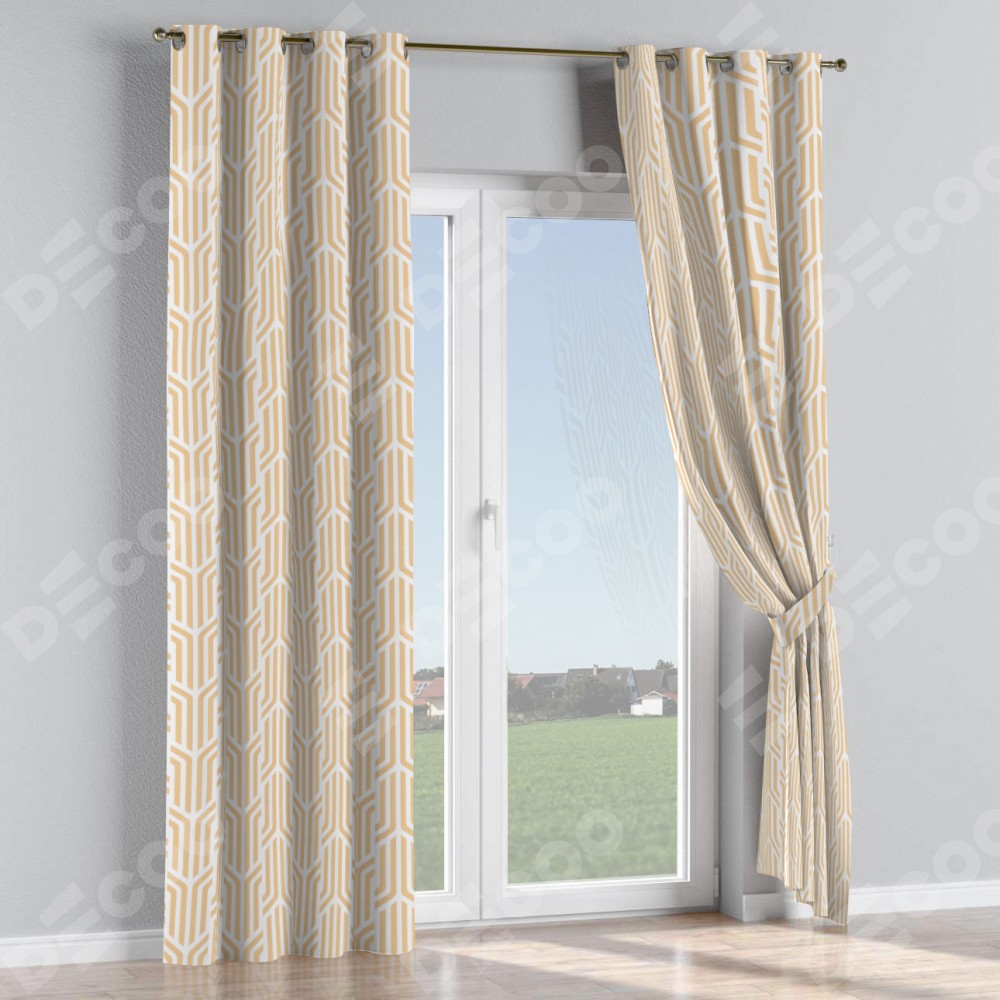 Длина карниза равна ширине окна плюс 30 — 50 см. При расчете длины штанги наконечники не учитываются. Для определения высоты штор измерьте расстояние от верхнего края карниза до пола и отнимите 1 см. Прибавьте 4 см  (гребешок над люверсом) Это габаритный размер вашего изделия.