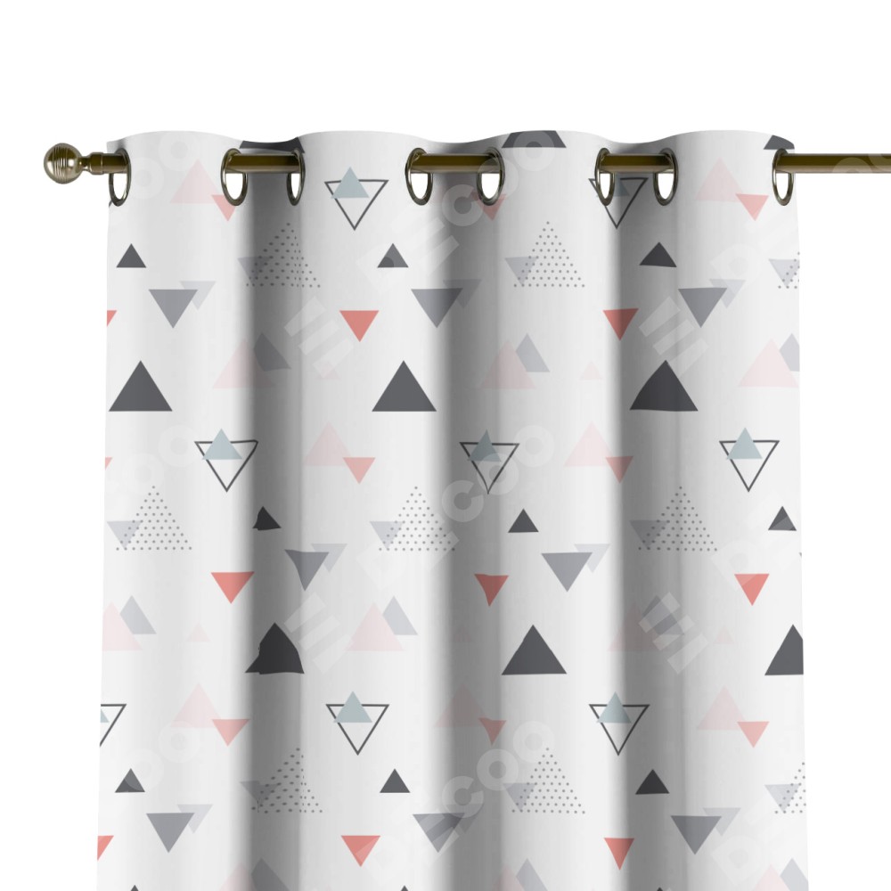 Комплект прямых штор, от производителя «Cortin», пошиты из ткани блэкаут с нанесением сублимационной печати «Дождь из треугольников». Данная модель пошита на люверсах, комплектуется на выбор круглым карнизом и подходит для монтажа на стену или потолок. Прямые шторы на люверсах шьются по стандарту с коэффициентом 1/2 (на 100 см. ширины проёма 200 см. ширины ткани), отличительным преимуществом данной модели является простой способ монтажа. Достаточно повесить ее на трубу и штора готова!