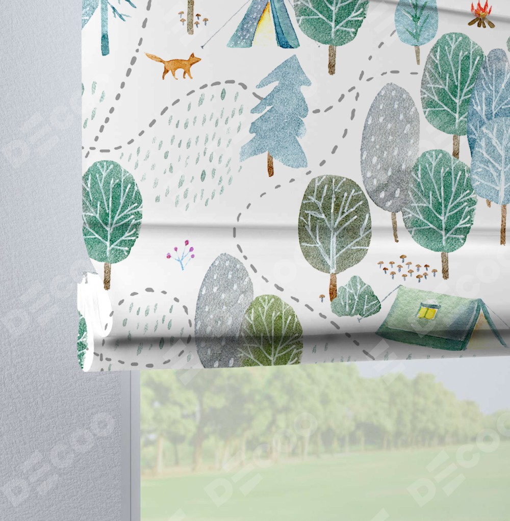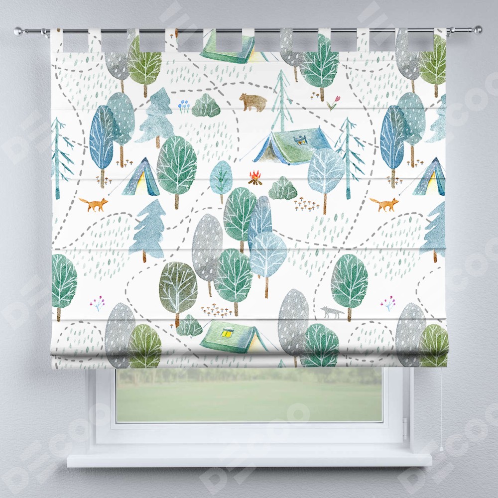 Римская штора производителя «Cortin», используется для проёма, пошита из ткани блэкаут с нанесением сублимационной печати «Лесистая местность». Данная модель пошита на петлях, комплектуется на выбор круглым карнизом и подходит для монтажа на стену. Римская штора на петлях имеет простую систему регулировки высоты, отличительным преимуществом данной модели является простой способ монтажа. Достаточно повесить ее на трубу и штора готова!