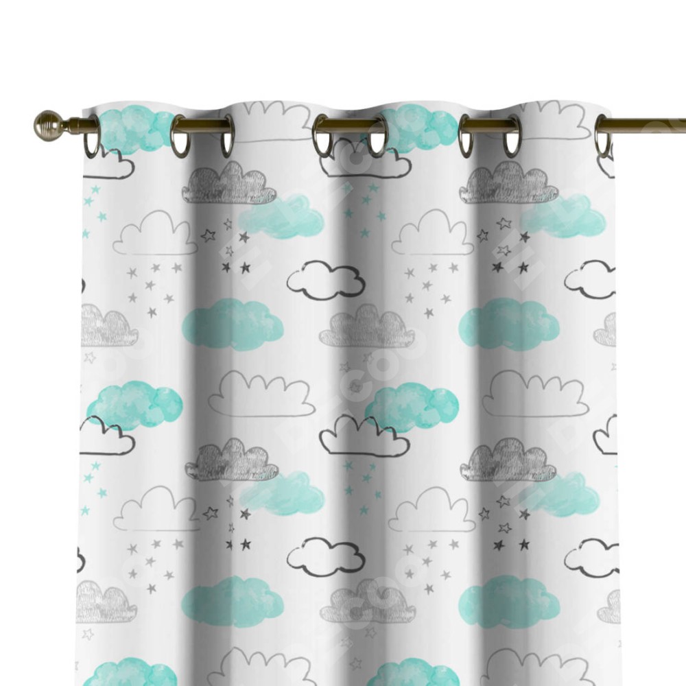 Комплект прямых штор, от производителя «Cortin», пошиты из ткани блэкаут с нанесением сублимационной печати «Облака и звёзды». Данная модель пошита на люверсах, комплектуется на выбор круглым карнизом и подходит для монтажа на стену или потолок. Прямые шторы на люверсах шьются по стандарту с коэффициентом 1/2 (на 100 см. ширины проёма 200 см. ширины ткани), отличительным преимуществом данной модели является простой способ монтажа. Достаточно повесить ее на трубу и штора готова!