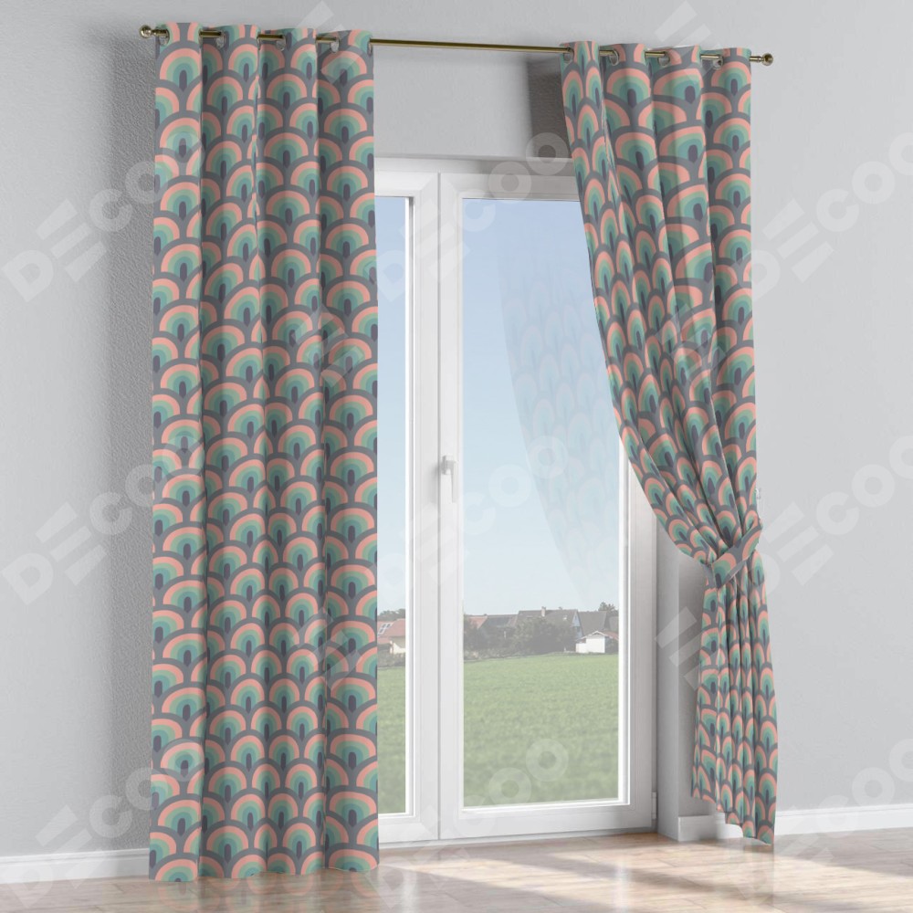 Комплект прямых штор, от производителя «Cortin», пошиты из ткани блэкаут с нанесением сублимационной печати «Ретро орнамент». Данная модель пошита на люверсах, комплектуется на выбор круглым карнизом и подходит для монтажа на стену или потолок. Прямые шторы на люверсах шьются по стандарту с коэффициентом 1/2 (на 100 см. ширины проёма 200 см. ширины ткани), отличительным преимуществом данной модели является простой способ монтажа. Достаточно повесить ее на трубу и штора готова!