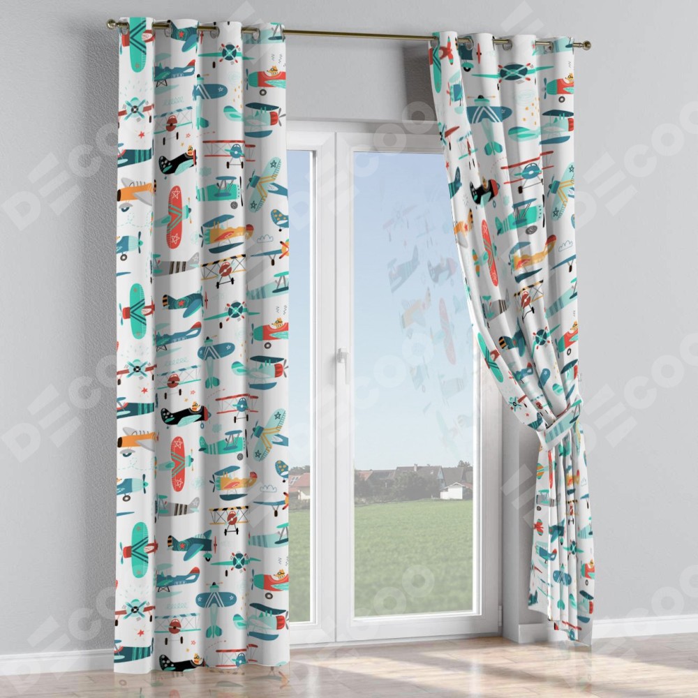 Комплект прямых штор, от производителя «Cortin», пошиты из ткани блэкаут с нанесением сублимационной печати «Самолёты и пилоты». Данная модель пошита на люверсах, комплектуется на выбор круглым карнизом и подходит для монтажа на стену или потолок. Прямые шторы на люверсах шьются по стандарту с коэффициентом 1/2 (на 100 см. ширины проёма 200 см. ширины ткани), отличительным преимуществом данной модели является простой способ монтажа. Достаточно повесить ее на трубу и штора готова!