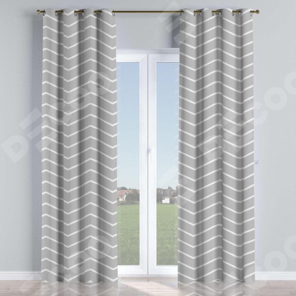 Комплект прямых штор, от производителя «Cortin», пошиты из ткани блэкаут с нанесением сублимационной печати «Серый зигзаг». Данная модель пошита на люверсах, комплектуется на выбор круглым карнизом и подходит для монтажа на стену или потолок. Прямые шторы на люверсах шьются по стандарту с коэффициентом 1/2 (на 100 см. ширины проёма 200 см. ширины ткани), отличительным преимуществом данной модели является простой способ монтажа. Достаточно повесить ее на трубу и штора готова!