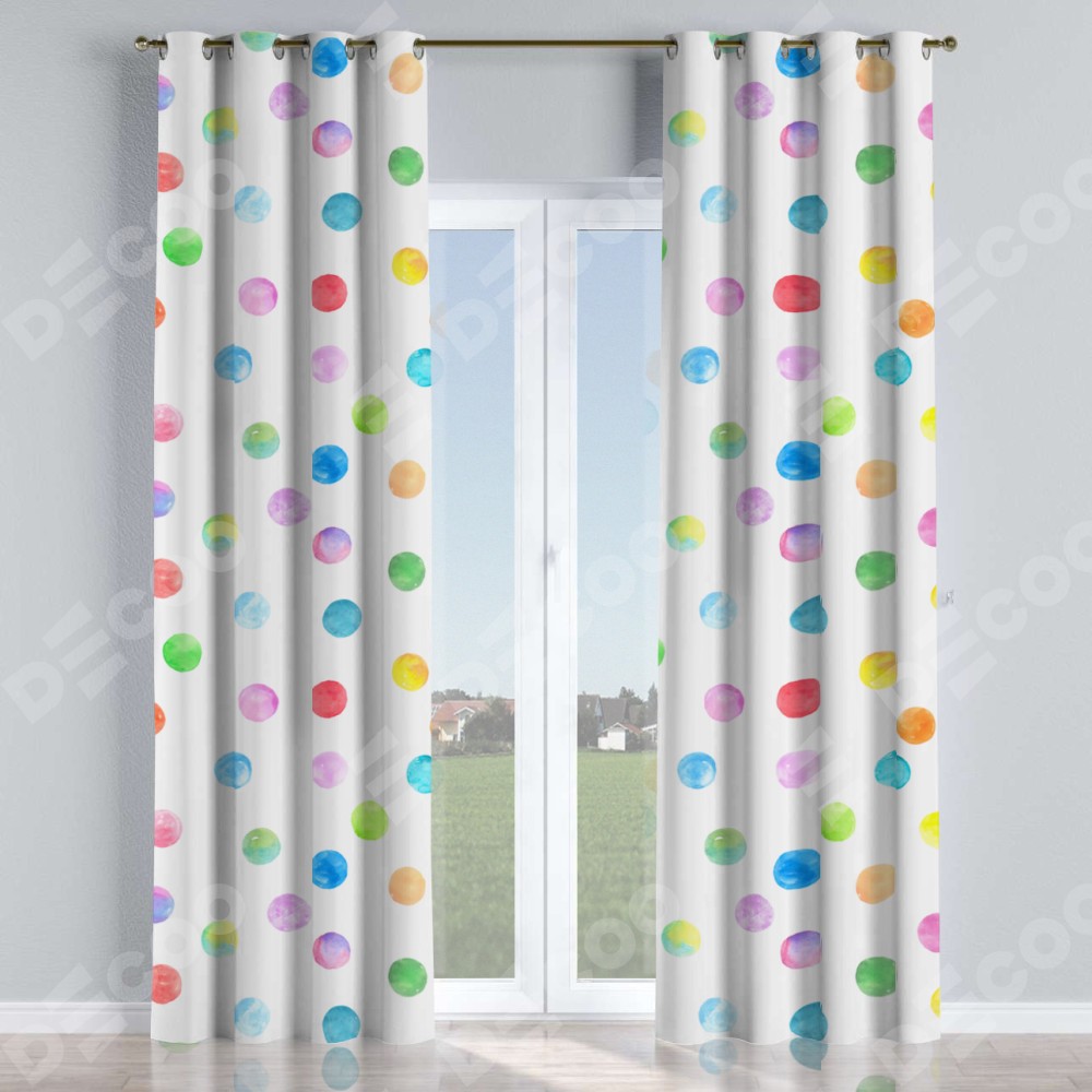 Комплект прямых штор, от производителя «Cortin», пошиты из ткани блэкаут с нанесением сублимационной печати «Цветные круги». Данная модель пошита на люверсах, комплектуется на выбор круглым карнизом и подходит для монтажа на стену или потолок. Прямые шторы на люверсах шьются по стандарту с коэффициентом 1/2 (на 100 см. ширины проёма 200 см. ширины ткани), отличительным преимуществом данной модели является простой способ монтажа. Достаточно повесить ее на трубу и штора готова!