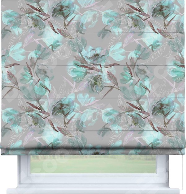 Римская штора производителя «Cortin», используется для проёма, пошита из ткани блэкаут с нанесением сублимационной печати «Цветочная акварель». Имеет универсальный механизм и подходит для монтажа: на потолок, на стену и в нишу.