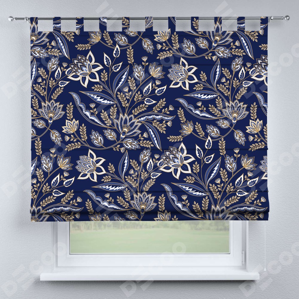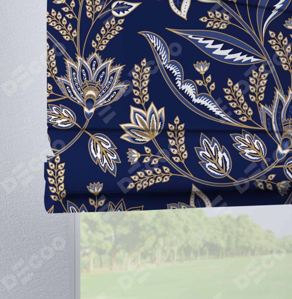 Римская штора «Кортин» на петлях «Индиго батик»