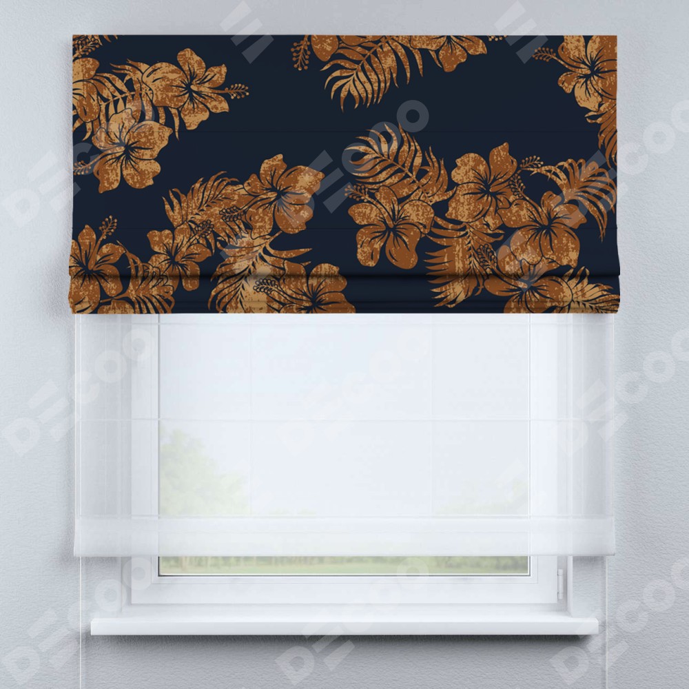 Римская штора день-ночь производителя «Cortin», используется для проёма, пошита из двух полотен, с лицевой блэкаут с нанесением сублимационной печати «Китайская роза», вторая ткань тюль (по стандарту комплектуется тюль белого цвета артикул V-01). Имеет универсальный механизм и подходит для монтажа: на потолок, на стену и в нишу.