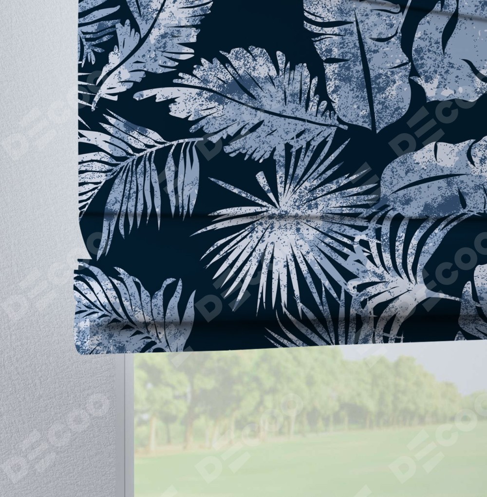 Римская штора производителя «Cortin», используется для проёма, пошита из ткани блэкаут с нанесением сублимационной печати «Тропическая ночь». Данная модель пошита на петлях, комплектуется на выбор круглым карнизом и подходит для монтажа на стену. Римская штора на петлях имеет простую систему регулировки высоты, отличительным преимуществом данной модели является простой способ монтажа. Достаточно повесить ее на трубу и штора готова!