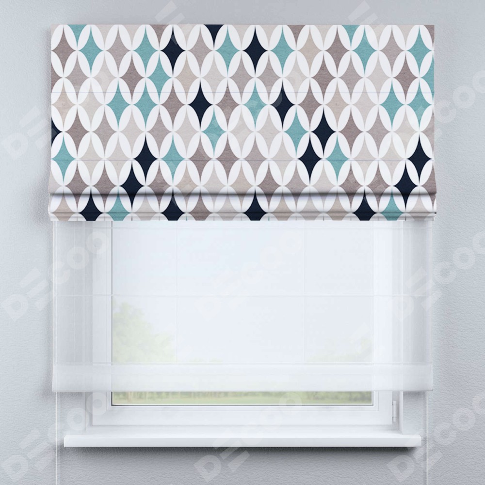 Римская штора день-ночь производителя «Cortin», используется для проёма, пошита из двух полотен, с лицевой блэкаут с нанесением сублимационной печати «Орнамент кристалл», вторая ткань тюль (по стандарту комплектуется тюль белого цвета артикул V-01). Имеет универсальный механизм и подходит для монтажа: на потолок, на стену и в нишу.