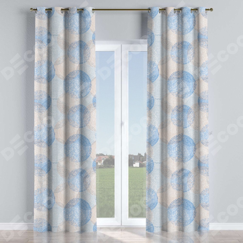 Комплект прямых штор, от производителя «Cortin», пошиты из ткани блэкаут с нанесением сублимационной печати «Абстрактные круги». Данная модель пошита на люверсах, комплектуется на выбор круглым карнизом и подходит для монтажа на стену или потолок. Прямые шторы на люверсах шьются по стандарту с коэффициентом 1/2 (на 100 см. ширины проёма 200 см. ширины ткани), отличительным преимуществом данной модели является простой способ монтажа. Достаточно повесить ее на трубу и штора готова!