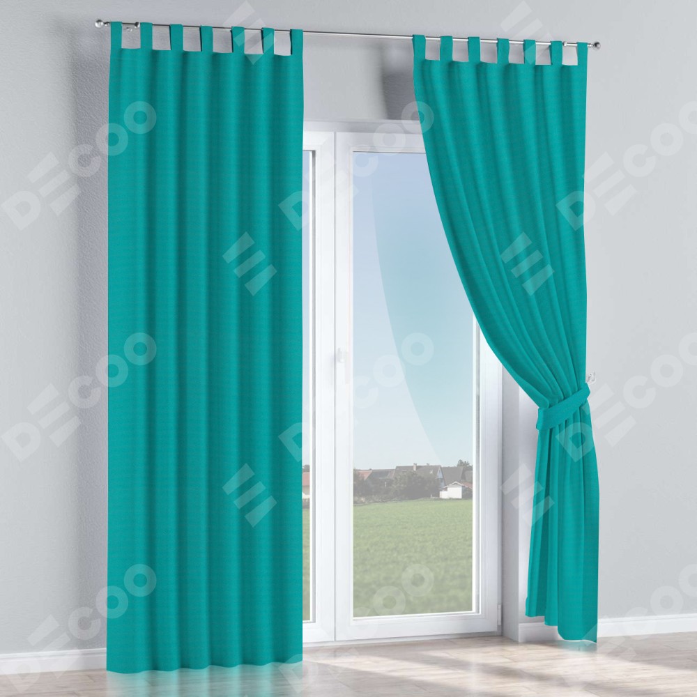 Комплект прямых штор, от производителя «Cortin», пошиты из ткани блэкаут однотонный бирюзовый, артикул ткани 88297. Данная модель пошита на петлях, комплектуется на выбор круглым карнизом и подходит для монтажа на стену или потолок. Прямые шторы на петлях шьются по стандарту с коэффициентом 1/2 (на 100 см. ширины проёма 200 см. ширины ткани), отличительным преимуществом данной модели является простой способ монтажа. Достаточно повесить ее на трубу и штора готова!