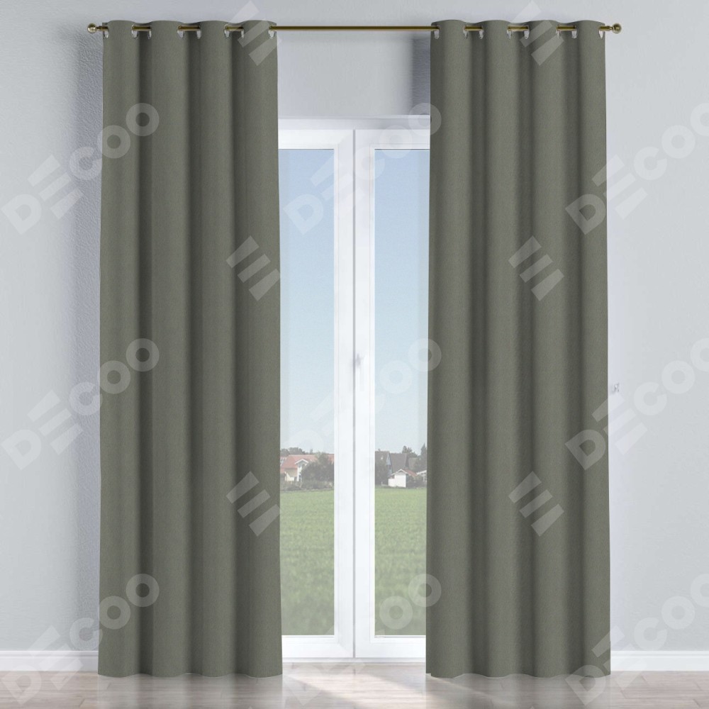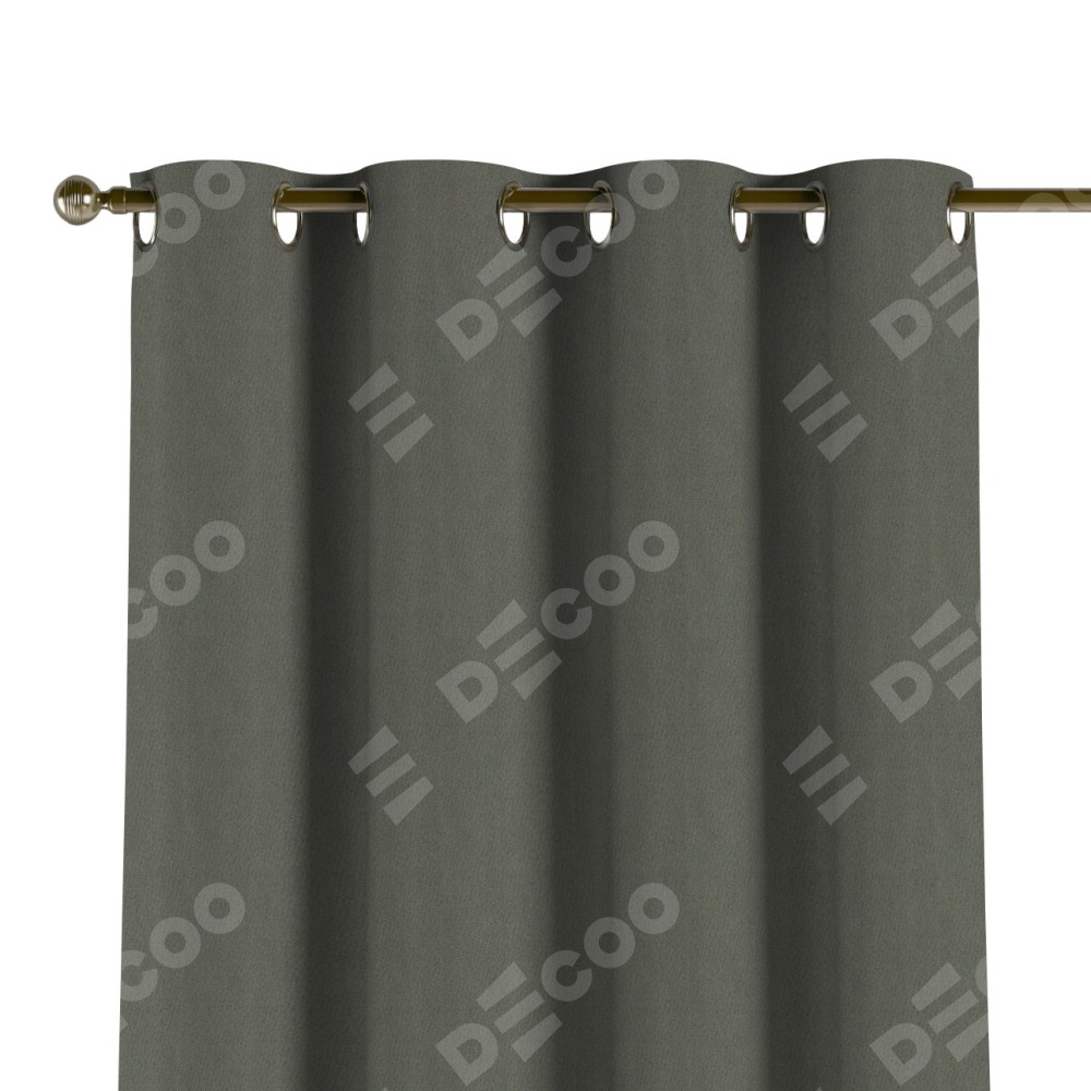 Комплект прямых штор, от производителя «Cortin», пошиты из ткани блэкаут однотонный тёмно-серый, артикул ткани 29332−1. Данная модель пошита на люверсах, комплектуется на выбор круглым карнизом и подходит для монтажа на стену или потолок. Прямые шторы на люверсах шьются по стандарту с коэффициентом 1/2 (на 100 см. ширины проёма 200 см. ширины ткани), отличительным преимуществом данной модели является простой способ монтажа. Достаточно повесить ее на трубу и штора готова!