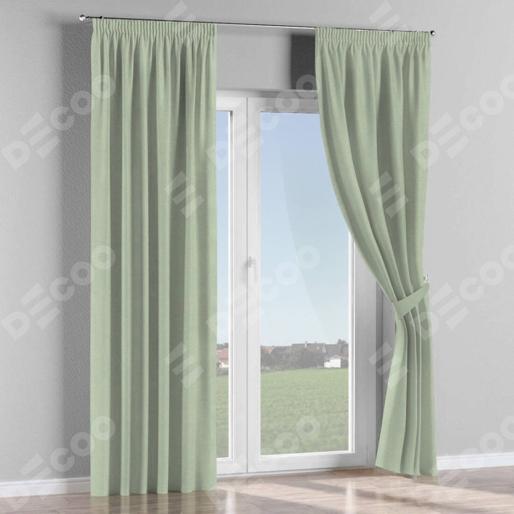 Комплект прямых штор, от производителя «Cortin», пошиты из ткани блэкаут однотонный светло-серый, артикул ткани 29332−2. С изнаночной стороны в верхней части штор пристрачивается шторная лента с декоративными складками «Карандаш». Для создания элегантных складок прямые шторы шьются по стандарту с коэффициентом 1:2 (на 100 см. ширины проёма 200 см. ширины ткани).
