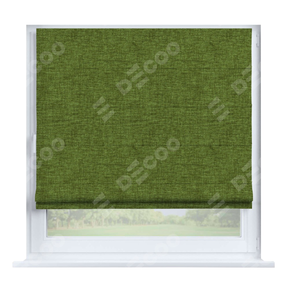 Римская штора производителя «Cortin», устанавливается на створку окна, пошита из ткани рогожка димаут салатовый, артикул 80423. Штора шьётся по индивидуальным размерам, для данного типа римской шторы возможная ширина от 35 до 150 см., высота до 250 см.