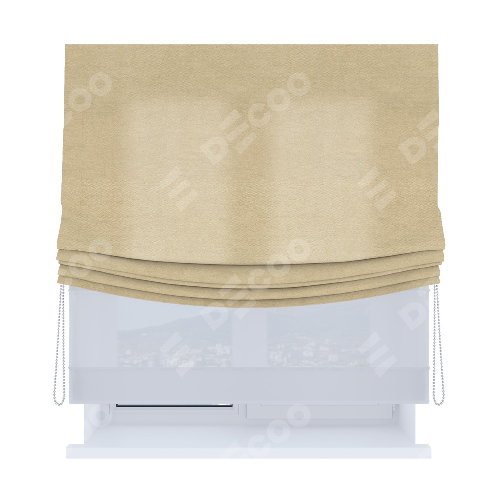 Римская штора день-ночь производителя «Cortin», используется для проёма, пошита из двух полотен, с лицевой стороны вельвет бежевый артикул 85538, вторая ткань тюль (по стандарту комплектуется тюль белого цвета артикул V-01). Имеет универсальный механизм и подходит для монтажа: на потолок, на стену и в нишу. Удобное управление каждой шторой отдельно.