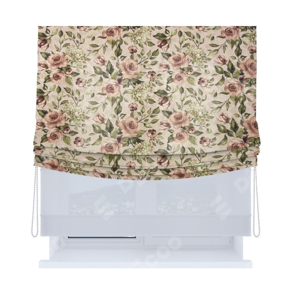 Римская штора «Кортин», день-ночь с мягкими складками, ткань «Розы бежевые»