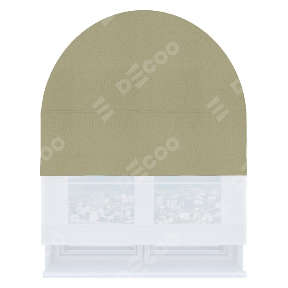 Римская штора день-ночь производителя «Cortin», используется для арочного проёма, пошита из двух полотен, с лицевой стороны блэкаут однотонный милано капучино артикул 06, вторая ткань тюль (по стандарту комплектуется тюль белого цвета артикул V-01). Штора шьётся по индивидуальным размерам, для данного типа римской шторы возможная ширина от 60 до 300 см. Удобное управление каждой шторой отдельно.