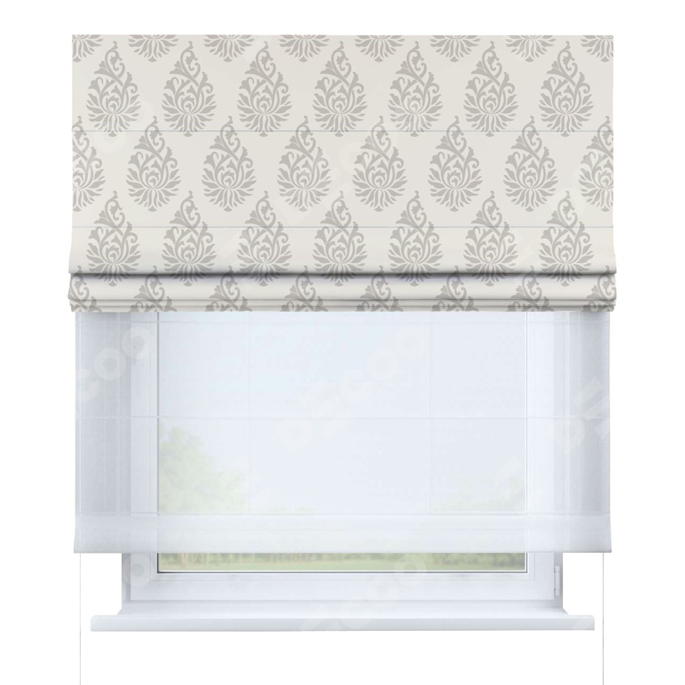 Римская штора день-ночь производителя «Cortin», используется для проёма, пошита из двух полотен, с лицевой блэкаут с нанесением сублимационной печати «Изящный кулон», вторая ткань тюль (по стандарту комплектуется тюль белого цвета артикул V-01). Имеет универсальный механизм и подходит для монтажа: на потолок, на стену и в нишу.
