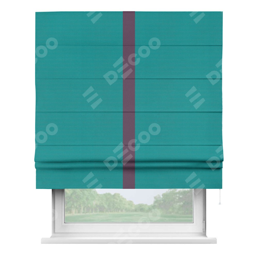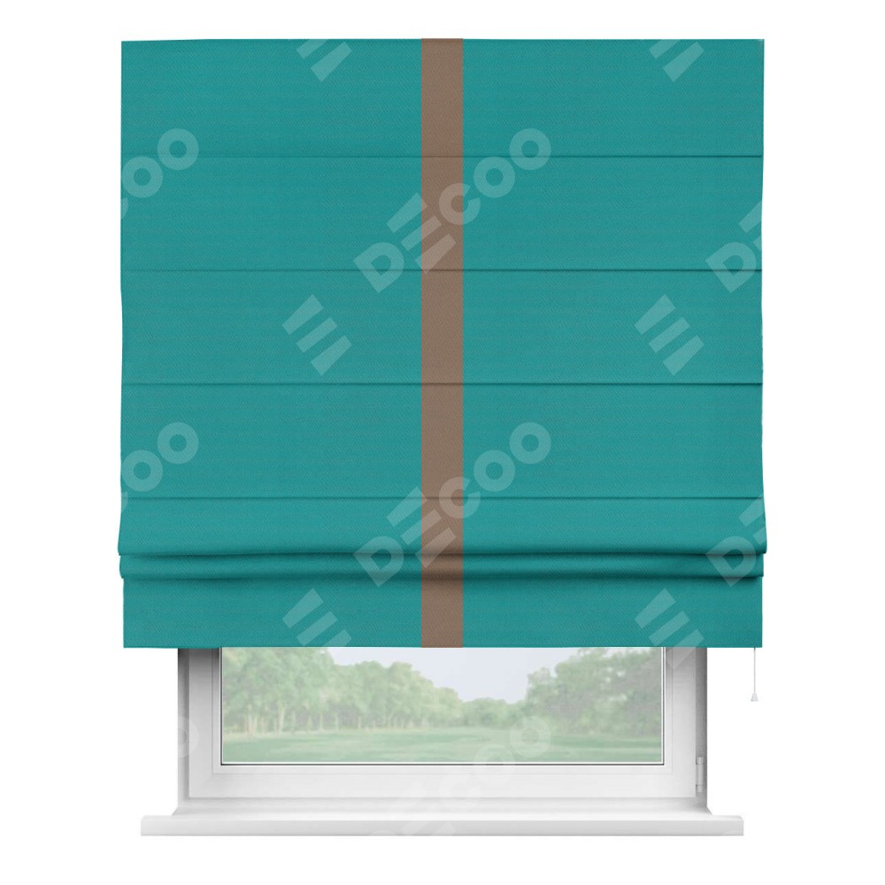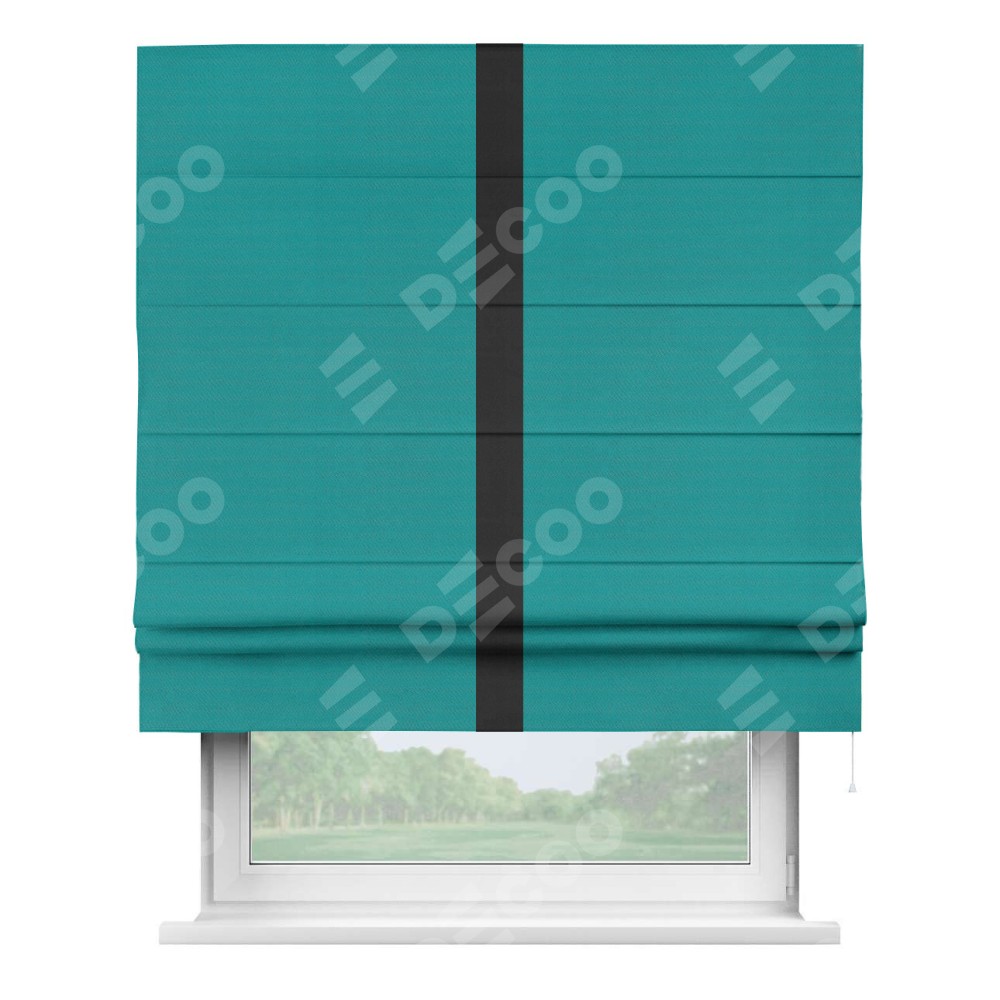 Римская штора «Кортин» с кантом Хайвэй, для проема, ткань блэкаут однотонный бирюзовый