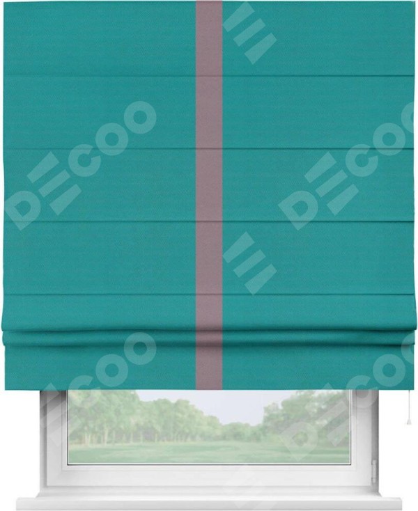 Римская штора производителя «Cortin», используется для проёма, пошита из ткани блэкаут однотонный бирюзовый, артикул ткани 88297. Отделка шторы кантом «Хайвей», ткань для канта используется из блэкаута однотонного разной расцветки на выбор. Имеет универсальный механизм и подходит для монтажа: на потолок, на стену и в нишу.