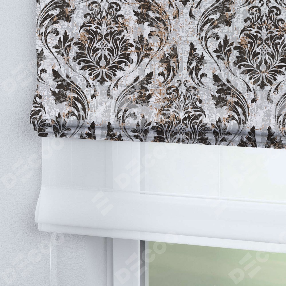 Римская штора «Кортин» день-ночь «Дамаск тёмный»