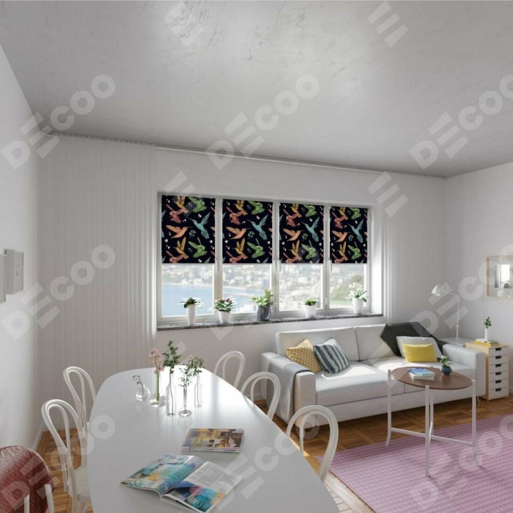 Заказать Рулонная штора Мини с принтом Птицы и цветы по индивидуальным размерам. Артикул товара: 236. Стоимость заказа на изделие будет зависеть от выбранных опций и устанавливается от 1 500 руб. На сайте магазина Decoo вы сможете выбрать рулонные шторы в любых размерах.