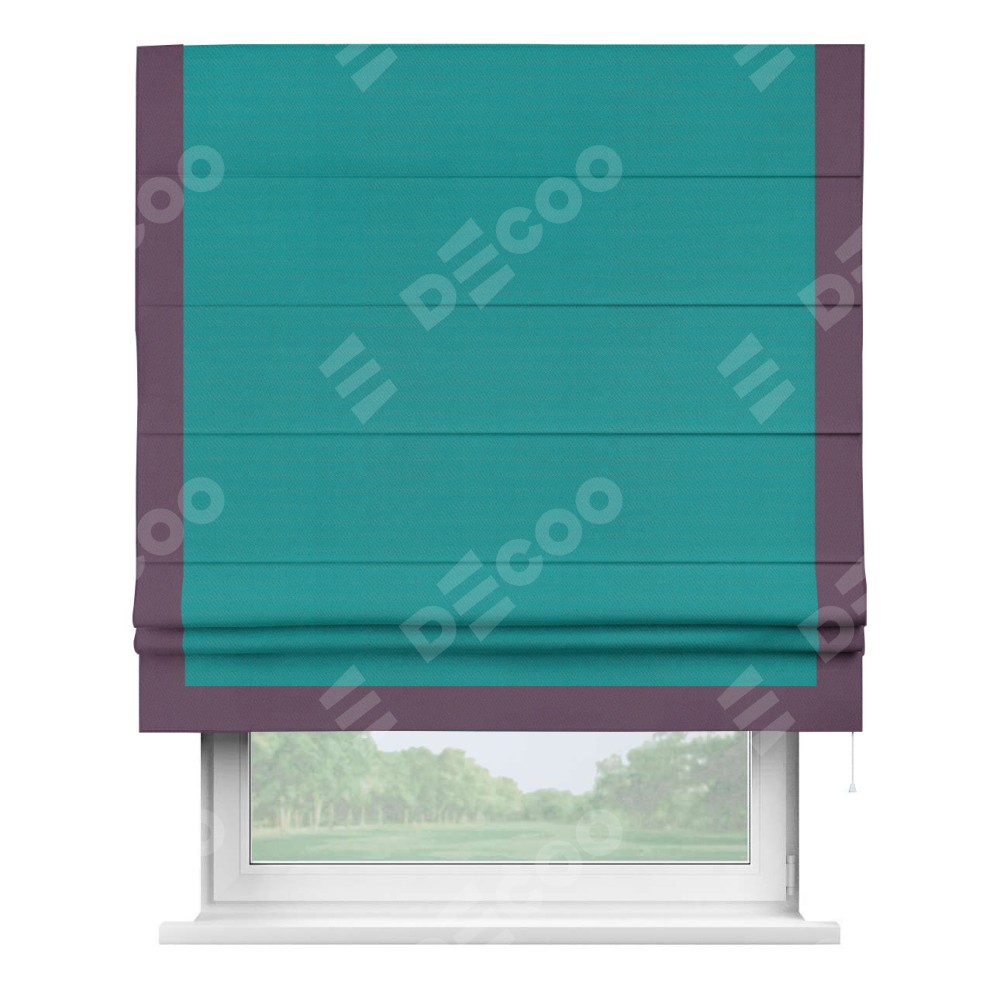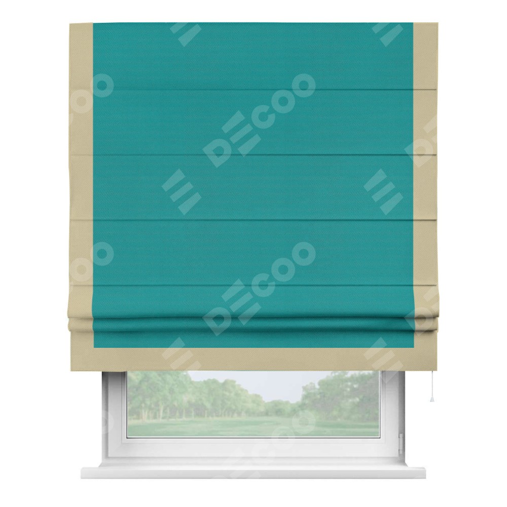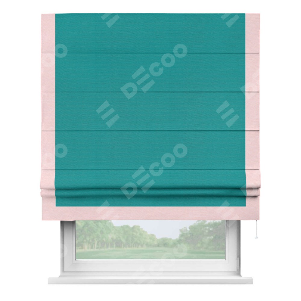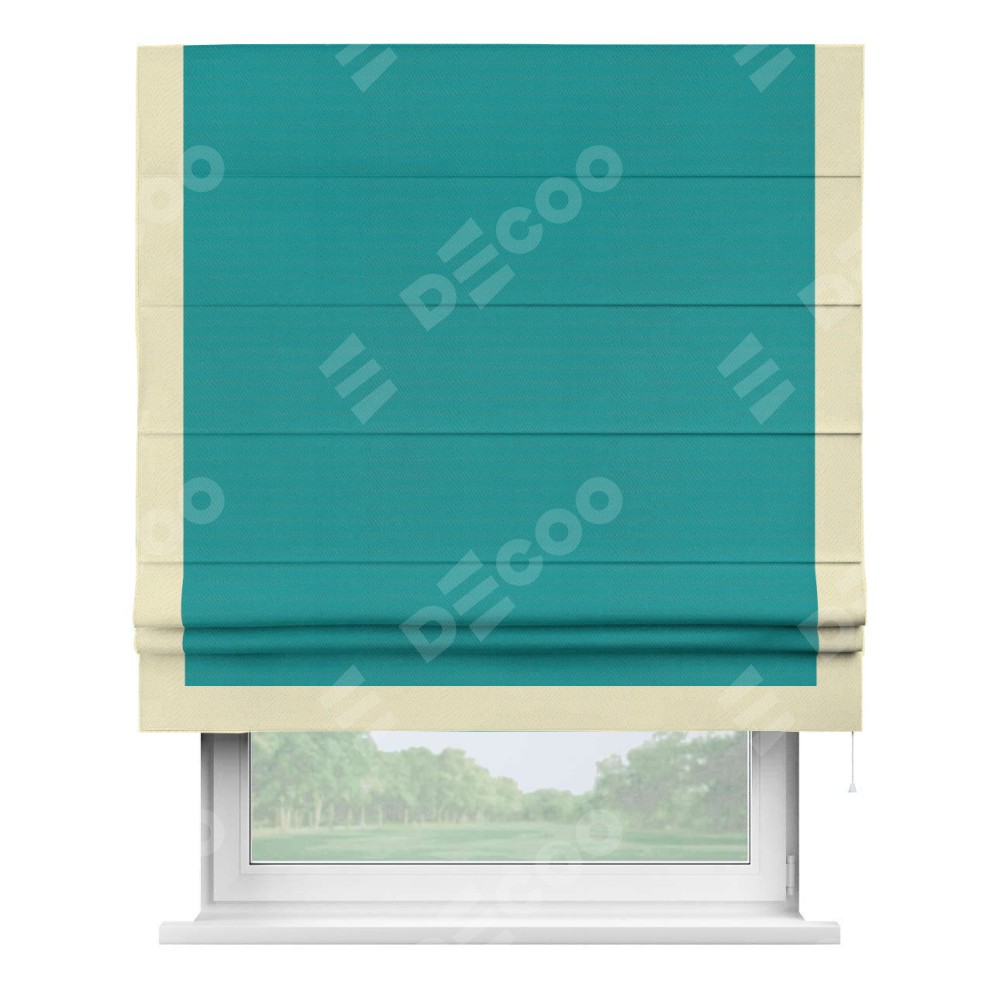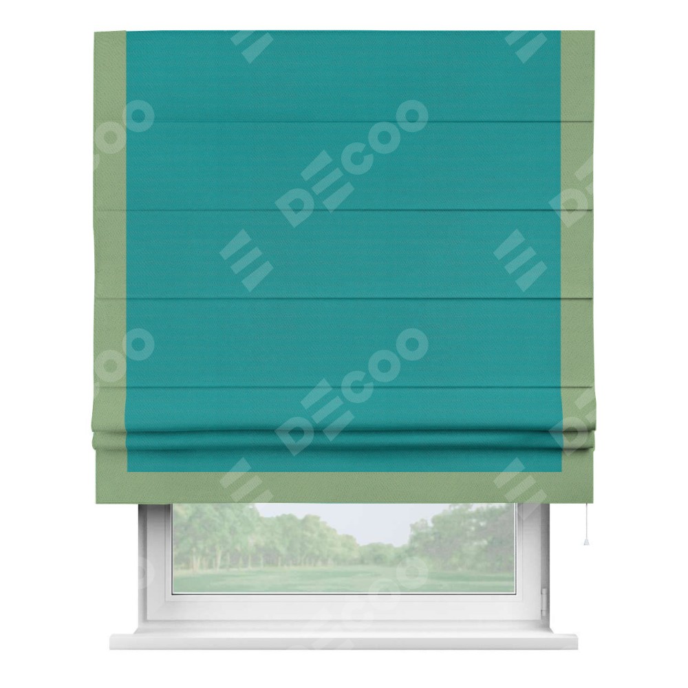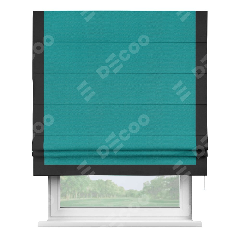 Римская штора «Кортин» с кантом Виктория, для проема, ткань блэкаут однотонный бирюзовый