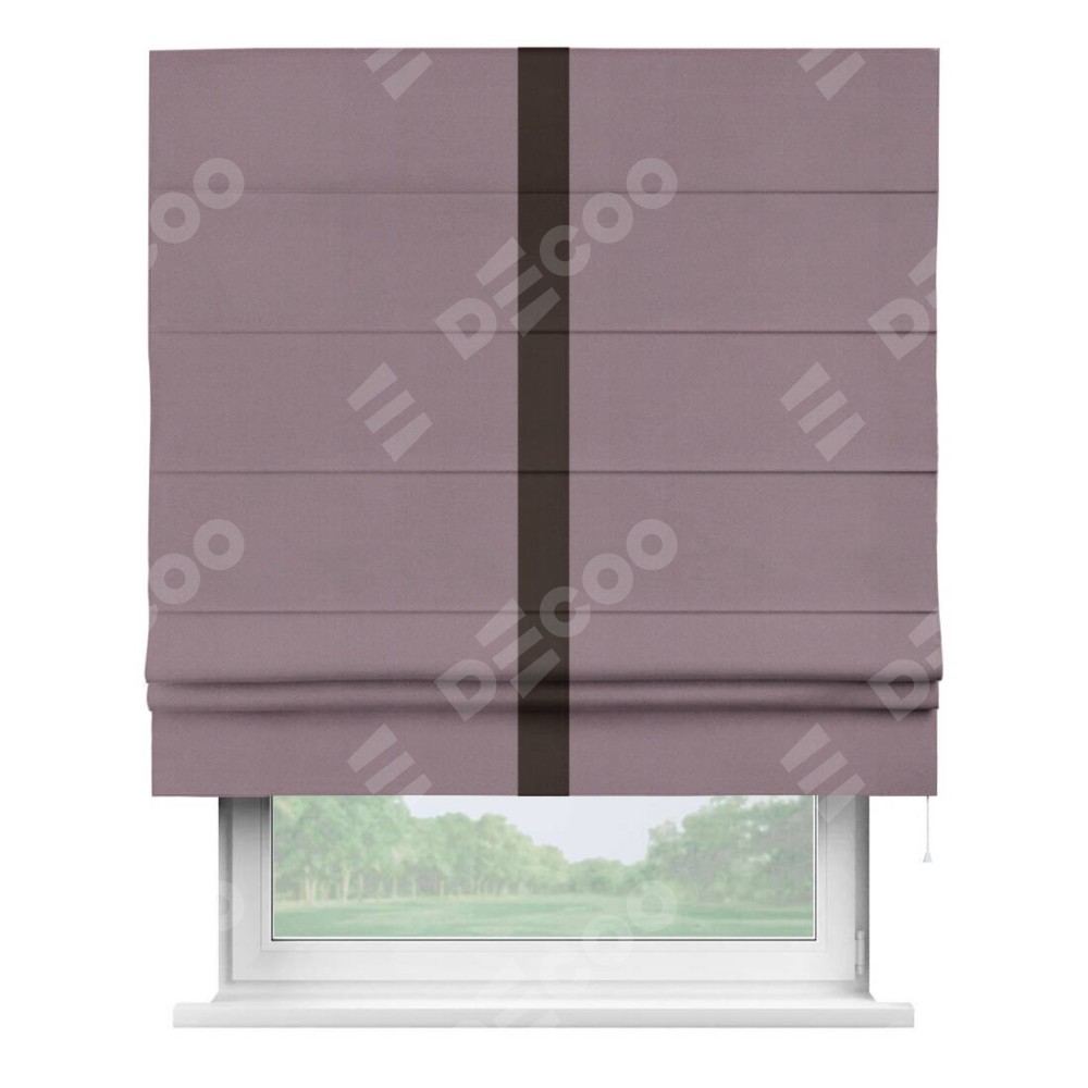 Римская штора производителя «Cortin», используется для проёма, пошита из ткани блэкаут однотонный брусника, артикул ткани 88302. Отделка шторы кантом «Хайвей», ткань для канта используется из блэкаута однотонного разной расцветки на выбор. Имеет универсальный механизм и подходит для монтажа: на потолок, на стену и в нишу.