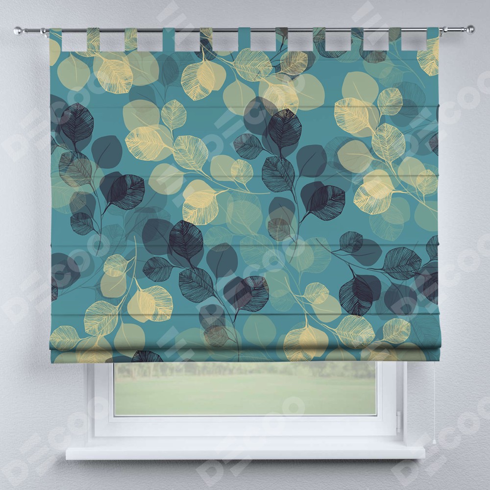 Римская штора производителя «Cortin», используется для проёма, пошита из ткани блэкаут с нанесением сублимационной печати «Листья в небе». Данная модель пошита на петлях, комплектуется на выбор круглым карнизом и подходит для монтажа на стену. Римская штора на петлях имеет простую систему регулировки высоты, отличительным преимуществом данной модели является простой способ монтажа. Достаточно повесить ее на трубу и штора готова!