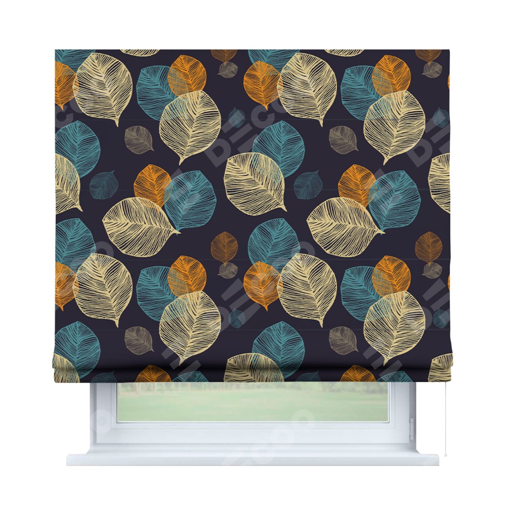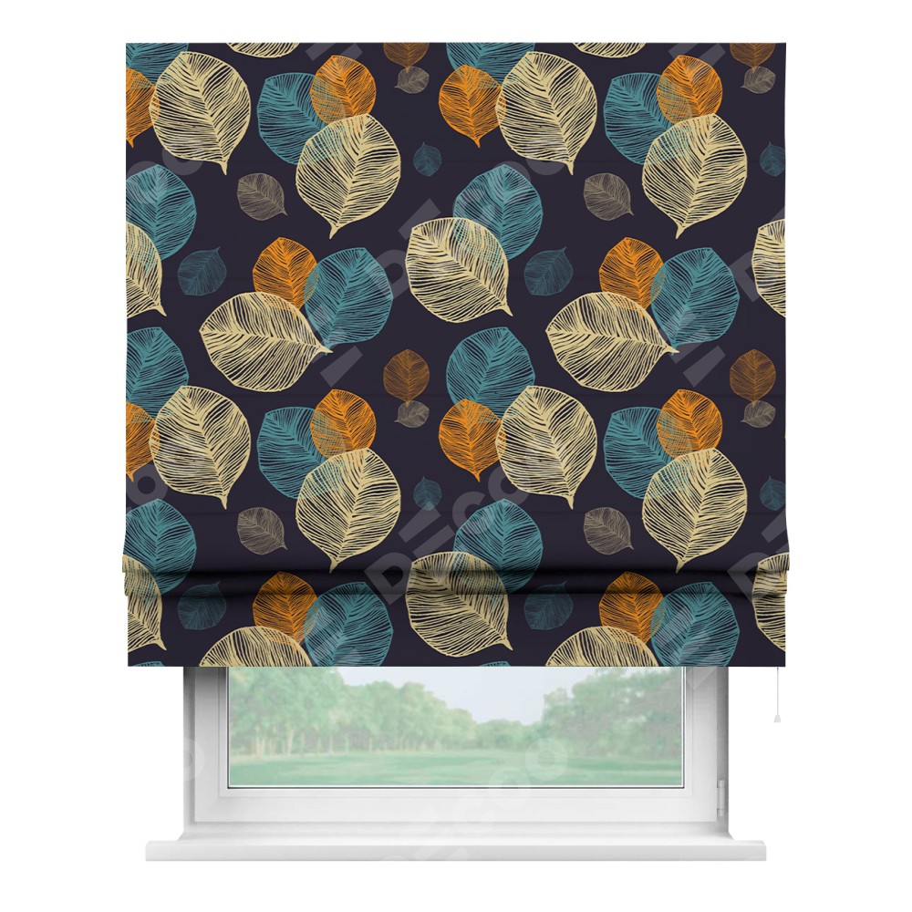 Римская штора производителя «Cortin», используется для проёма, пошита из ткани блэкаут с нанесением сублимационной печати «Листья в ночи». Имеет универсальный механизм и подходит для монтажа: на потолок, на стену и в нишу.