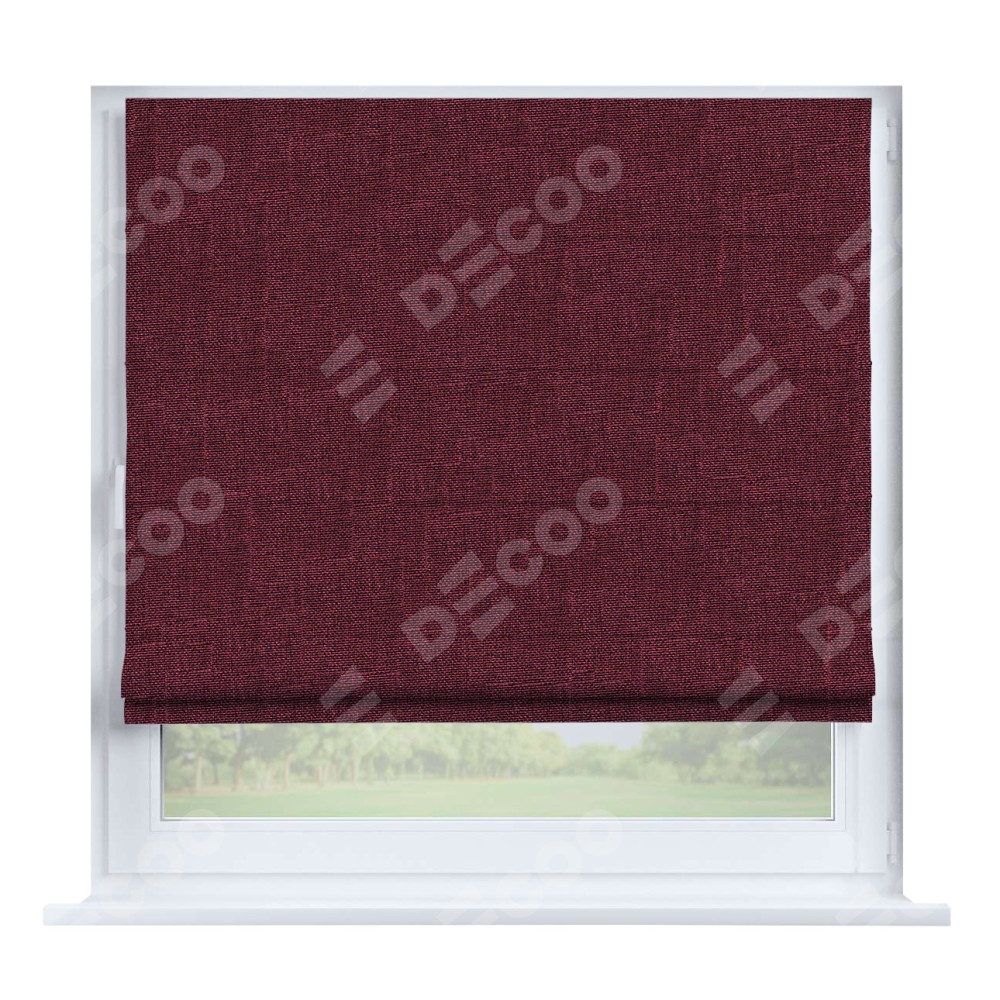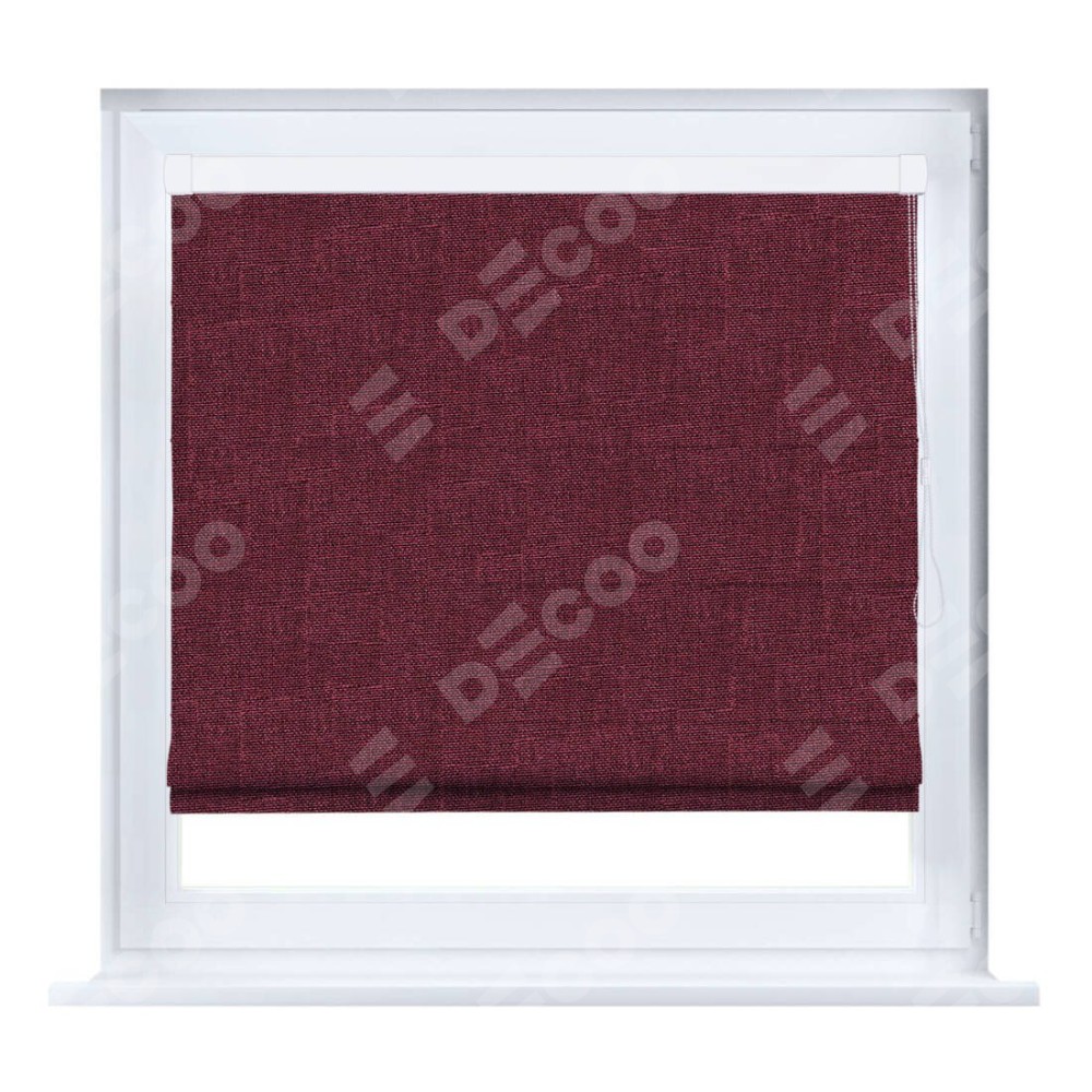 Римская штора производителя «Cortin», устанавливается на створку окна, пошита из ткани лён кашемир бордовый, артикул 21621. Штора шьётся по индивидуальным размерам, для данного типа римской шторы возможная ширина от 35 до 150 см., высота до 250 см.