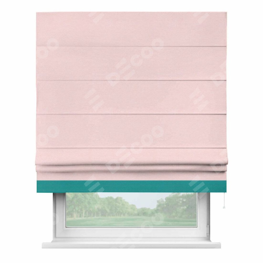 Римская штора производителя «Cortin», используется для проёма, пошита из ткани блэкаут однотонный розовый, артикул ткани 83046. Отделка шторы кантом «Джестер», ткань для канта используется из блэкаута однотонного разной расцветки на выбор. Имеет универсальный механизм и подходит для монтажа: на потолок, на стену и в нишу.