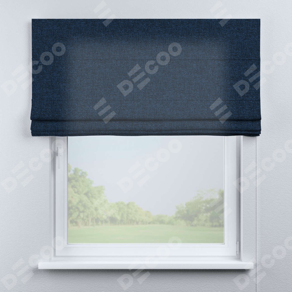 Римская штора «Кортин» для проема, ткань лён кашемир тёмно-синий