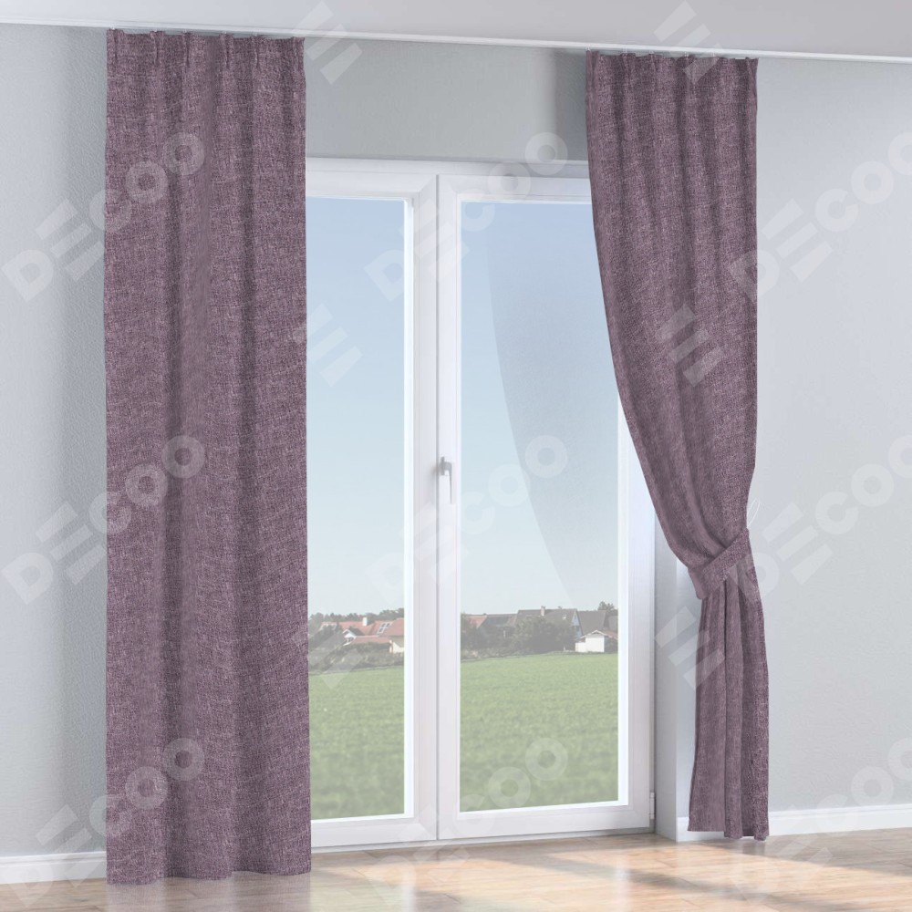 Комплект прямых штор, от производителя «Cortin», пошиты из ткани лён кашемир фиолетовый, артикул ткани 17211. С изнаночной стороны в верхней части штор пристрачивается шторная лента с декоративными складками «Кустик». Для создания элегантных складок прямые шторы шьются по стандарту с коэффициентом 1:2 (на 100 см. ширины проёма 200 см. ширины ткани).