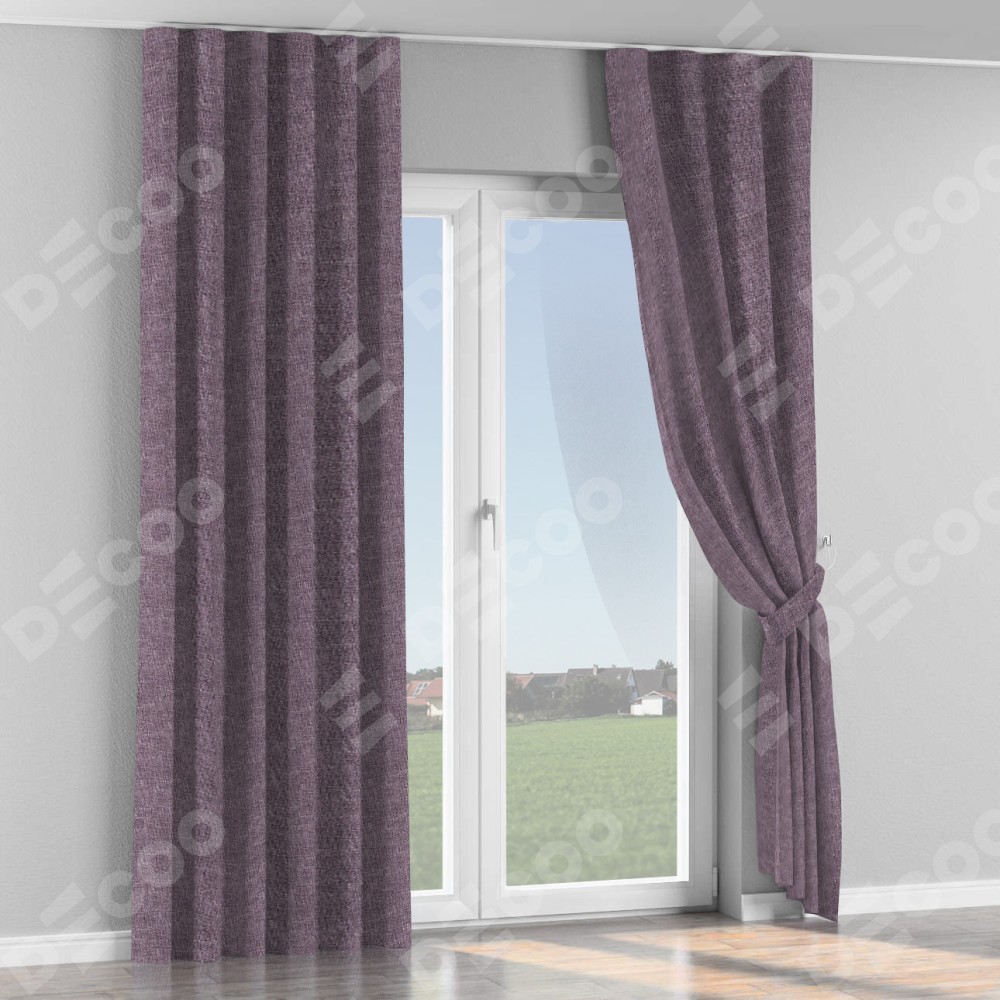 Комплект прямых штор, от производителя «Cortin», пошиты из ткани лён кашемир фиолетовый, артикул ткани 17211. С изнаночной стороны в верхней части штор пристрачивается шторная лента с декоративными складками «Волна». Для создания элегантных складок прямые шторы шьются по стандарту с коэффициентом 1:2 (на 100 см. ширины проёма 200 см. ширины ткани).