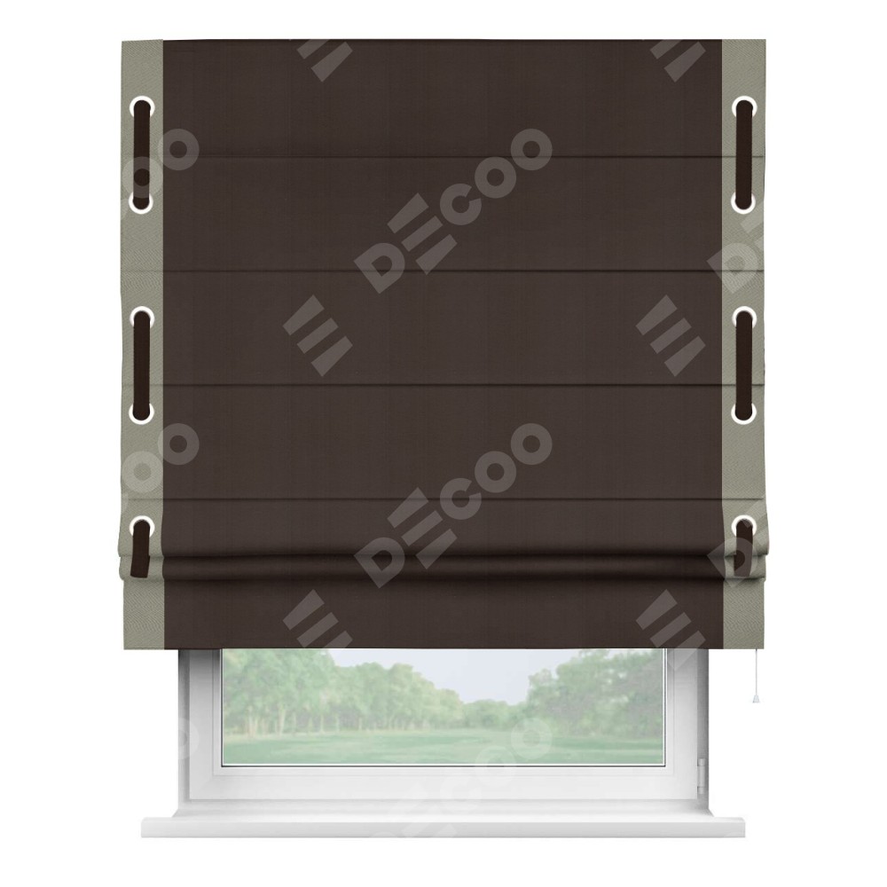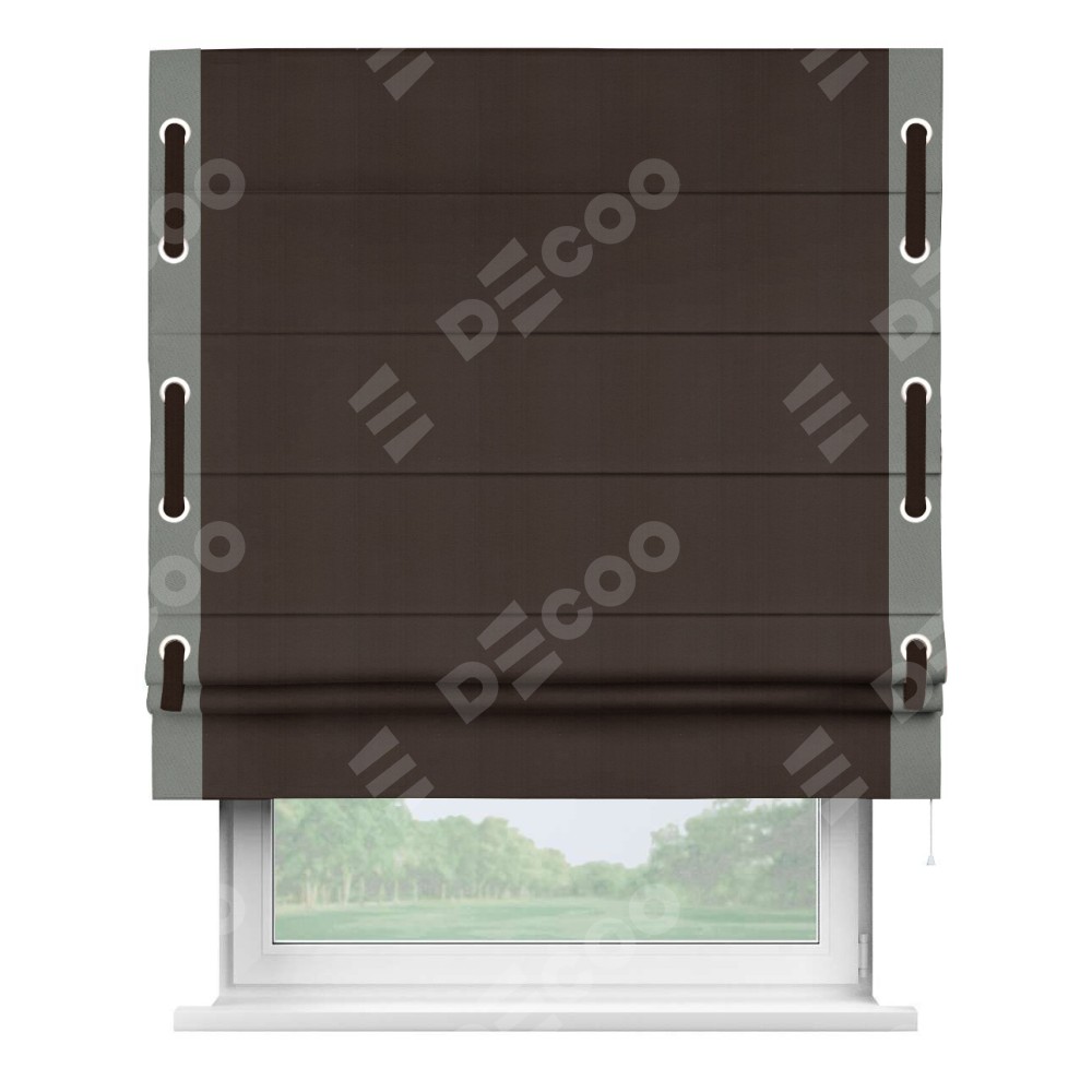 Римская штора «Кортин» с кантом Стрим Дуо (люверсы с пояском), для проема, ткань блэкаут однотонный тёмно-коричневый
