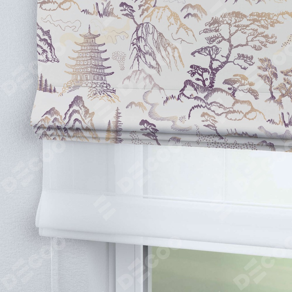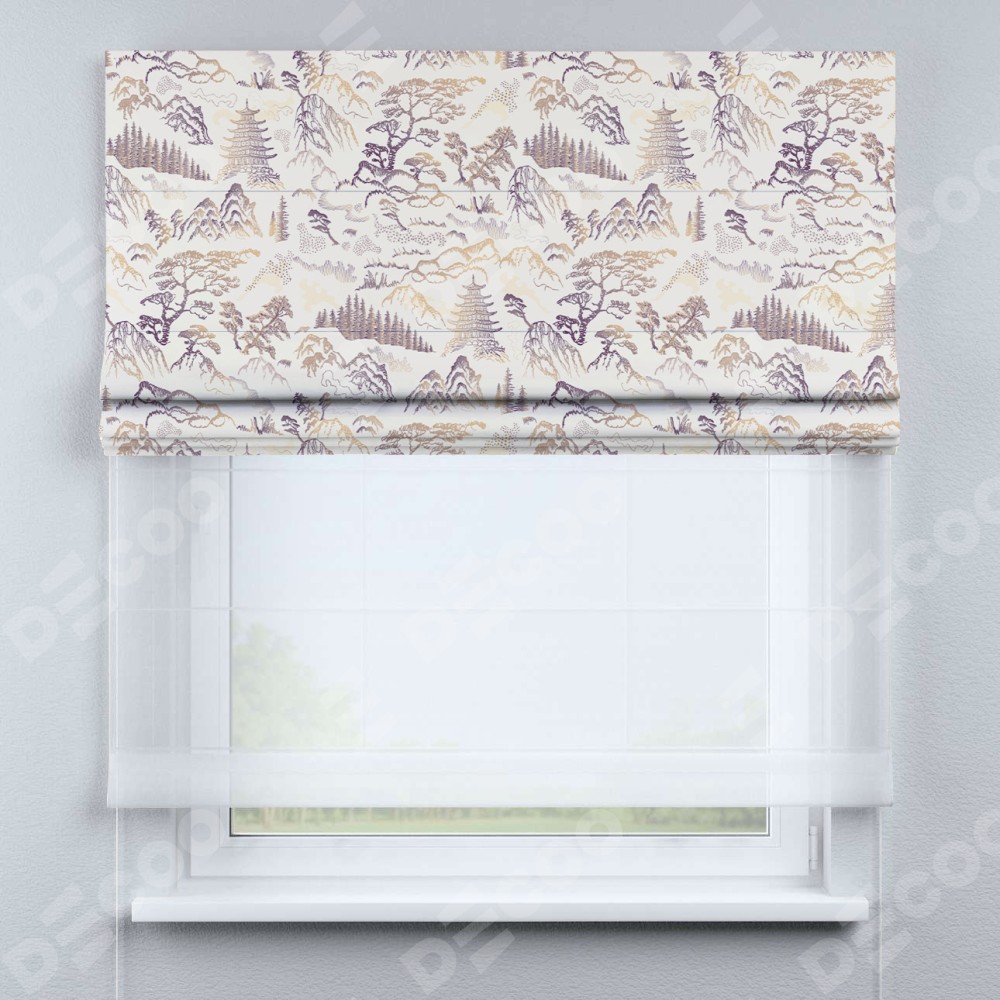 Римская штора день-ночь производителя «Cortin», используется для проёма, пошита из двух полотен, с лицевой блэкаут с нанесением сублимационной печати «Горные вершины», вторая ткань тюль (по стандарту комплектуется тюль белого цвета артикул V-01). Имеет универсальный механизм и подходит для монтажа: на потолок, на стену и в нишу.