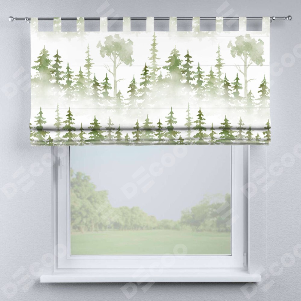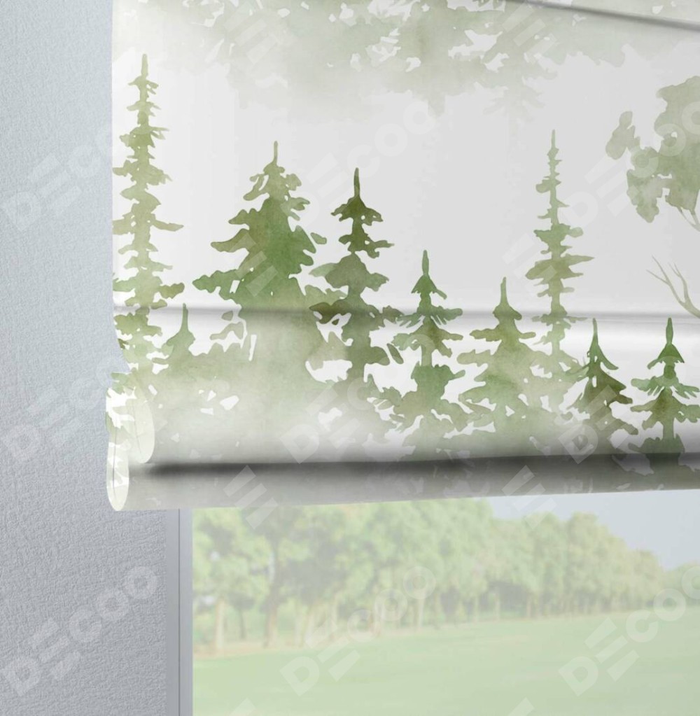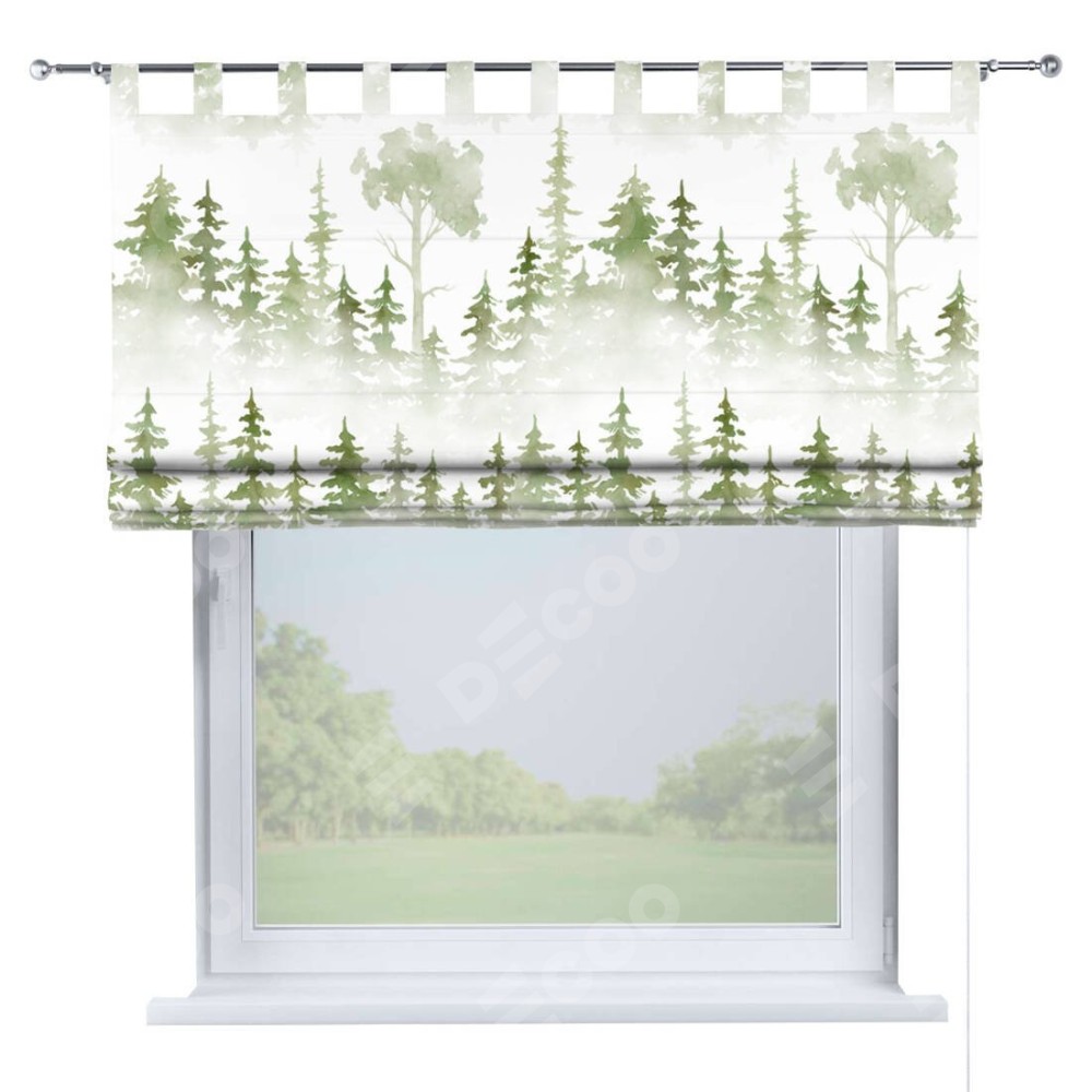 Римская штора производителя «Cortin», используется для проёма, пошита из ткани блэкаут с нанесением сублимационной печати «Туманный лес». Данная модель пошита на петлях, комплектуется на выбор круглым карнизом и подходит для монтажа на стену. Римская штора на петлях имеет простую систему регулировки высоты, отличительным преимуществом данной модели является простой способ монтажа. Достаточно повесить ее на трубу и штора готова!