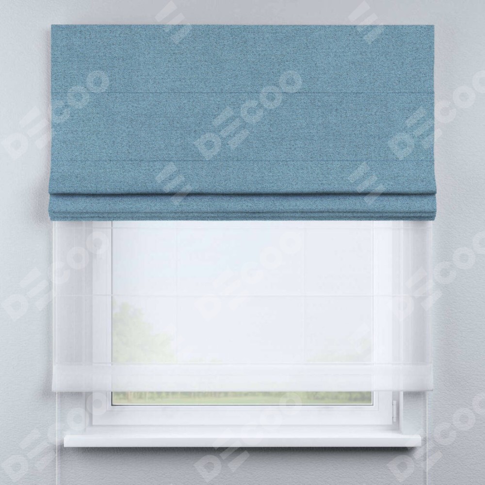 Римская штора «Кортин» день-ночь, ткань лён блэкаут, голубой