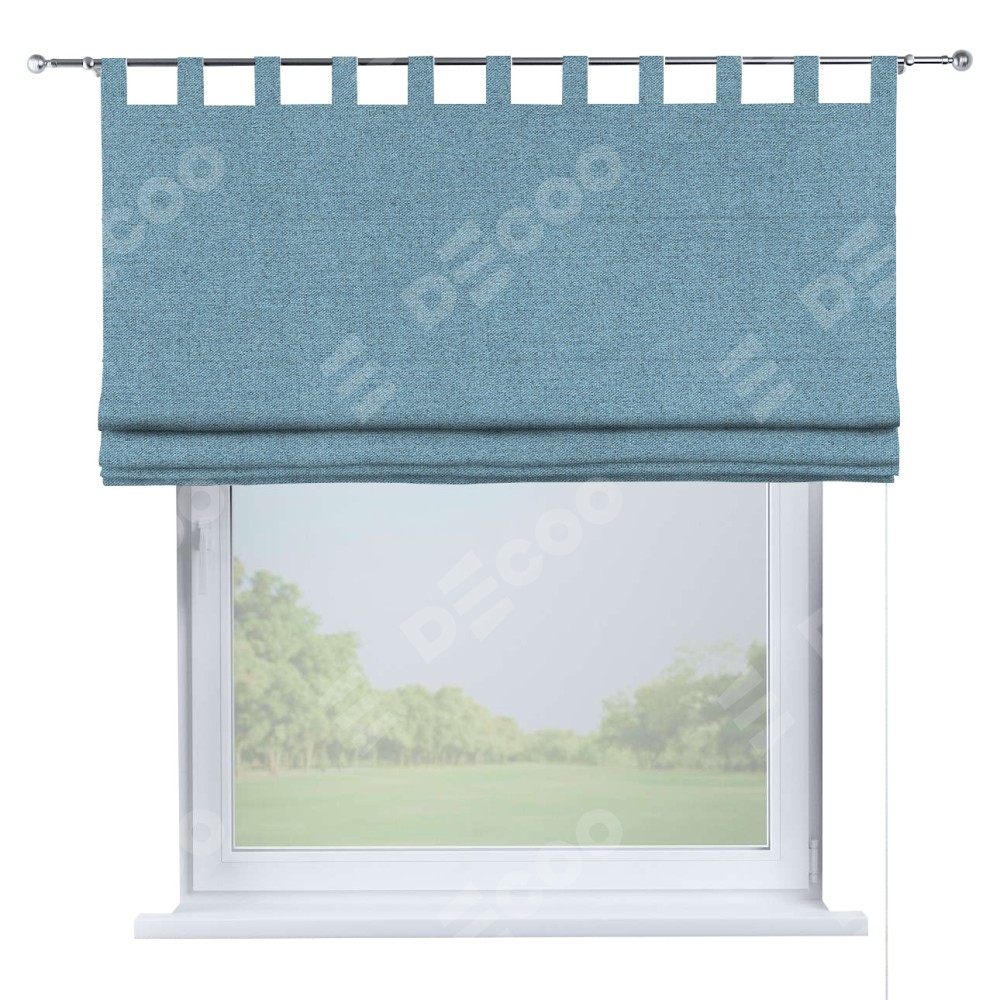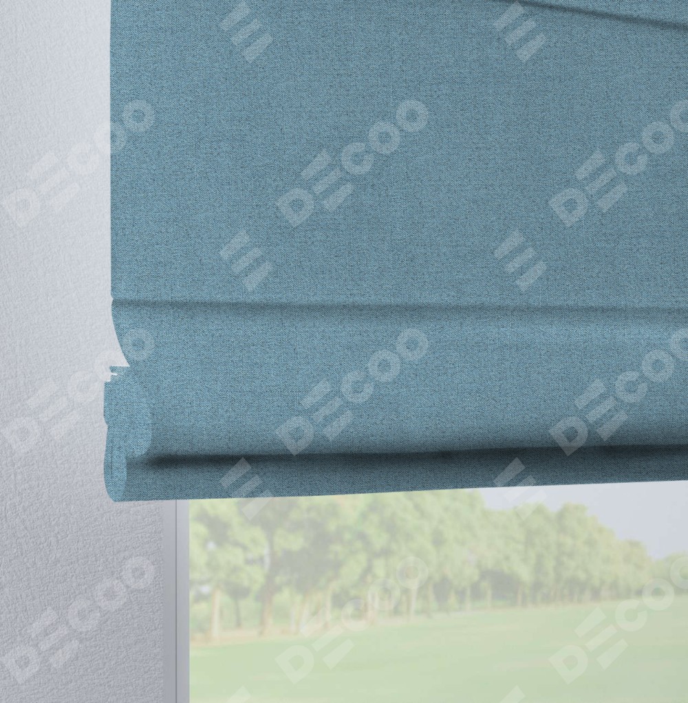 Римская штора на петлях «Кортин», ткань лён блэкаут, голубой