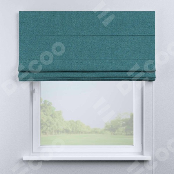 Римская штора производителя «Cortin», используется для проёма, пошита из ткани лён блэкаут синий, артикул ткани 69528. Имеет универсальный механизм и подходит для монтажа: на потолок, на стену и в нишу.