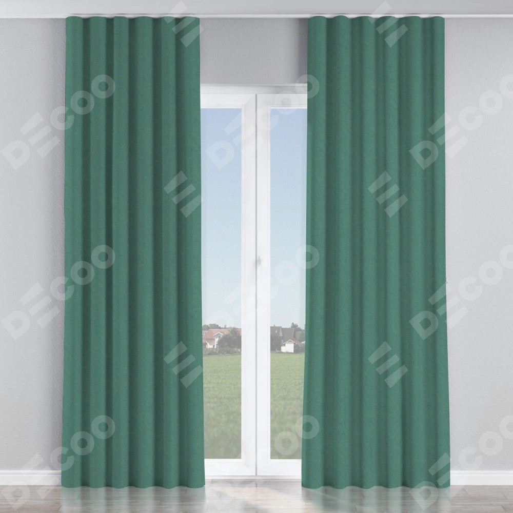Комплект прямых штор, от производителя «Cortin», пошиты из ткани лён блэкаут бирюзовый, артикул ткани 69517. С изнаночной стороны в верхней части штор пристрачивается шторная лента с декоративными складками «Волна». Для создания элегантных складок прямые шторы шьются по стандарту с коэффициентом 1:2 (на 100 см. ширины проёма 200 см. ширины ткани).
