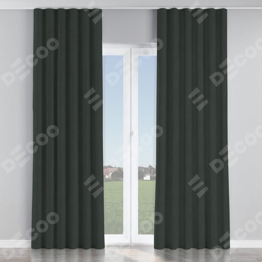 Комплект прямых штор, от производителя «Cortin», пошиты из ткани лён блэкаут графит, артикул ткани 69448. С изнаночной стороны в верхней части штор пристрачивается шторная лента с декоративными складками «Волна». Для создания элегантных складок прямые шторы шьются по стандарту с коэффициентом 1:2 (на 100 см. ширины проёма 200 см. ширины ткани).