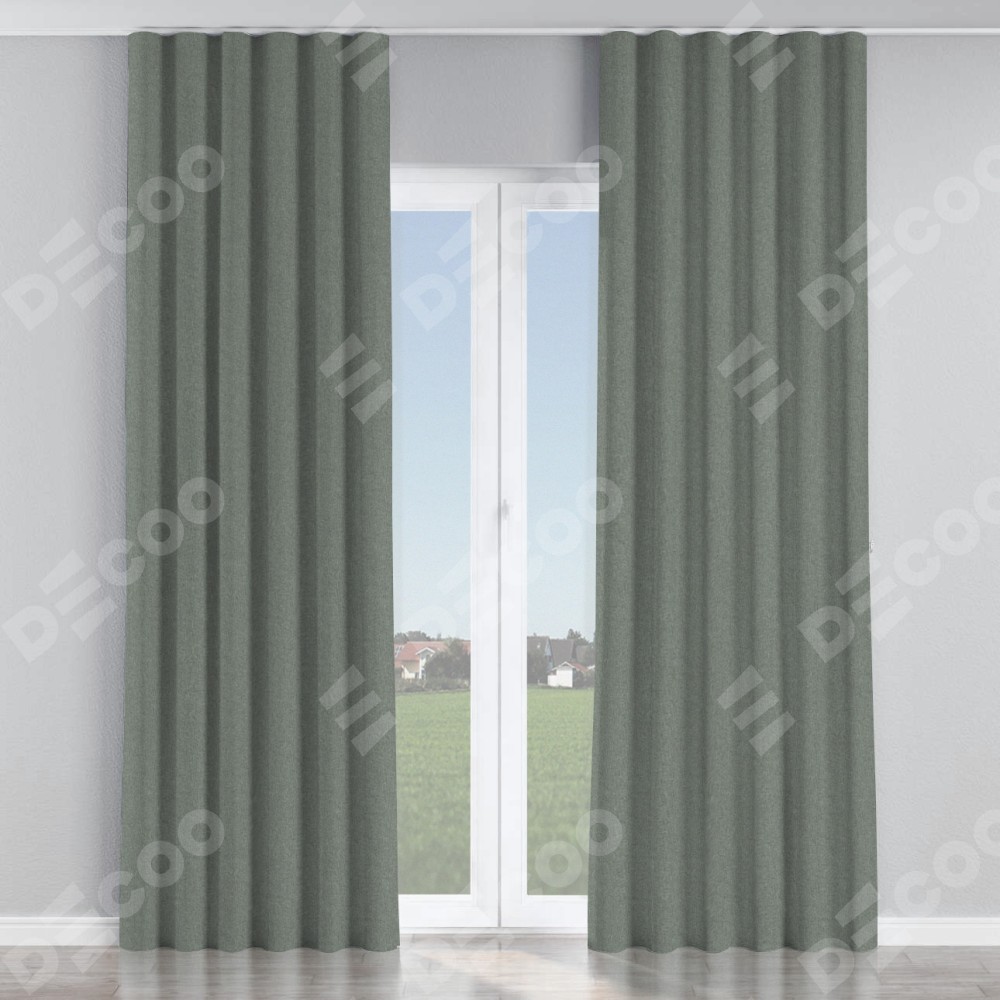 Комплект прямых штор, от производителя «Cortin», пошиты из ткани лён блэкаут серый, артикул ткани 69447. С изнаночной стороны в верхней части штор пристрачивается шторная лента с декоративными складками «Волна». Для создания элегантных складок прямые шторы шьются по стандарту с коэффициентом 1:2 (на 100 см. ширины проёма 200 см. ширины ткани).