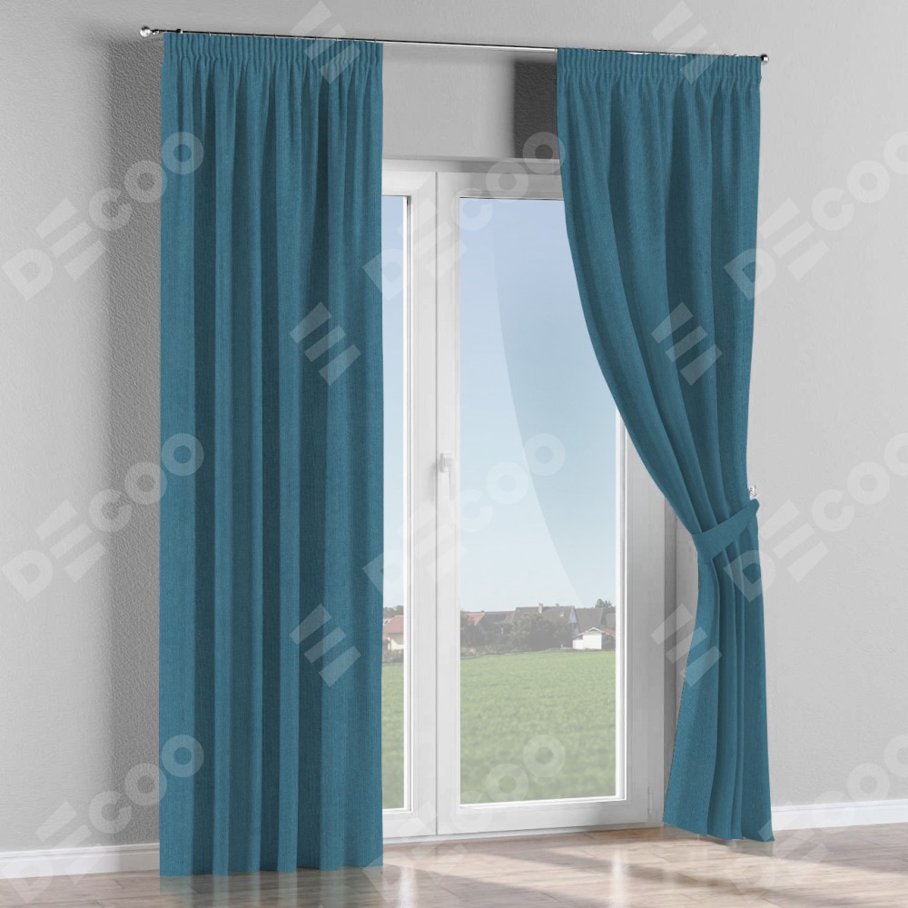 Комплект штор на тесьме «Карандаш», лён блэкаут синий