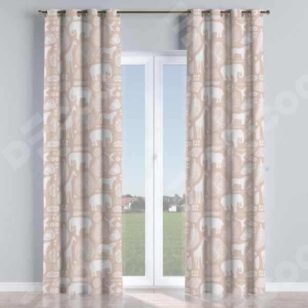 Комплект прямых штор, от производителя «Cortin», пошиты из ткани блэкаут с нанесением сублимационной печати «Африканские животные». Данная модель пошита на люверсах, комплектуется на выбор круглым карнизом и подходит для монтажа на стену или потолок. Прямые шторы на люверсах шьются по стандарту с коэффициентом 1/2 (на 100 см. ширины проёма 200 см. ширины ткани), отличительным преимуществом данной модели является простой способ монтажа. Достаточно повесить ее на трубу и штора готова!