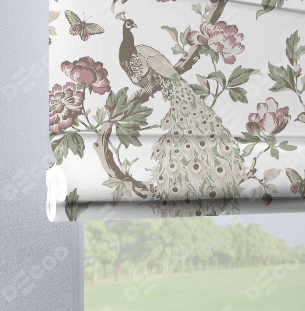 Римская штора «Кортин» на петлях «Гордые павлины»